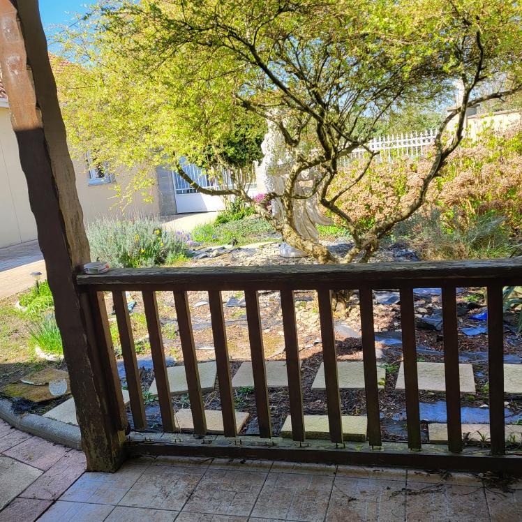 A l'extérieur, la maison dispose d'un beau jardin arboré, d'une pergola et une cour avec plusieurs places de stationnement.