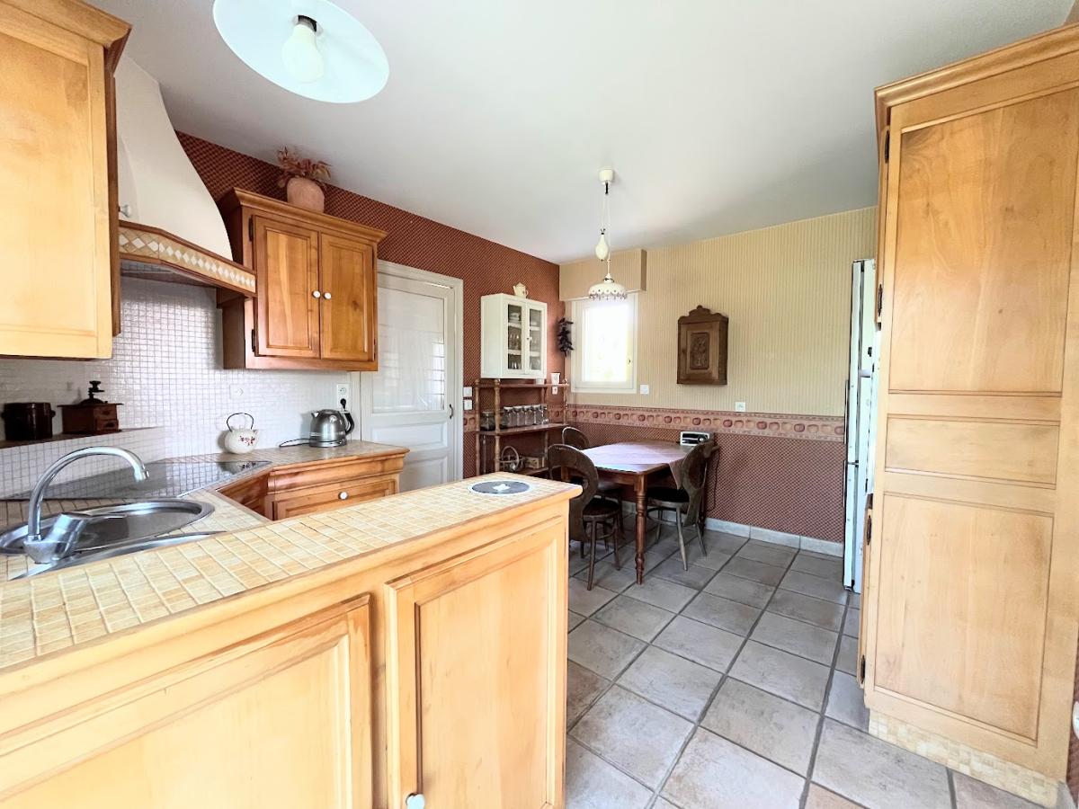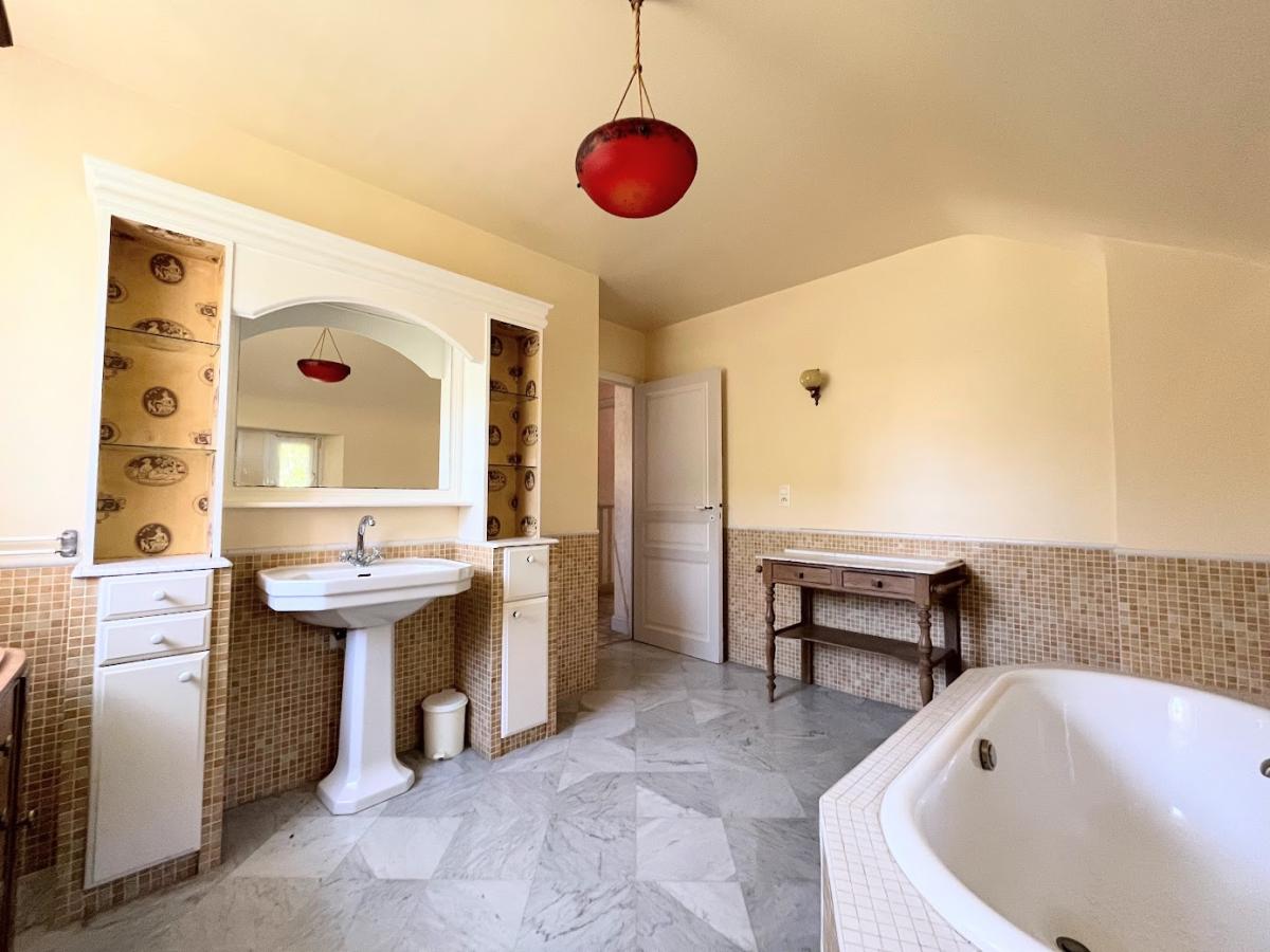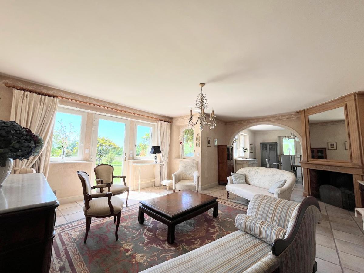 Au rez-de-chaussée : grande entrée, vaste salon/séjour avec cheminée, cuisine et arrière-cuisine, lingerie, véranda lumineuse, WC indépendant avec lave-mains et vestiaire, salle de bains, dressing, et une chambre avec salle d’eau et WC privatifs.