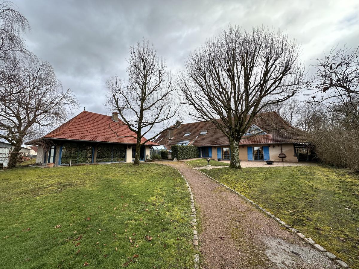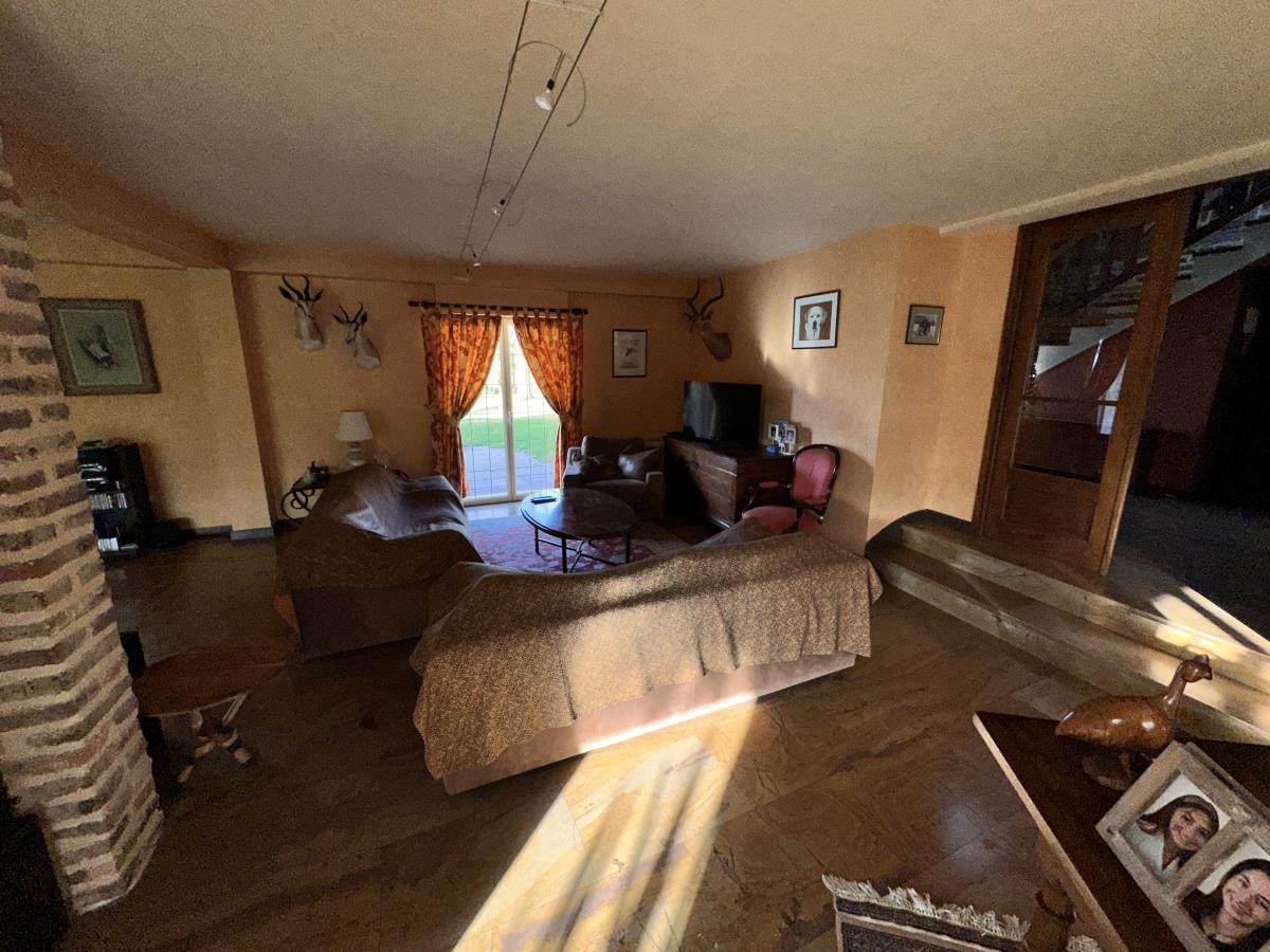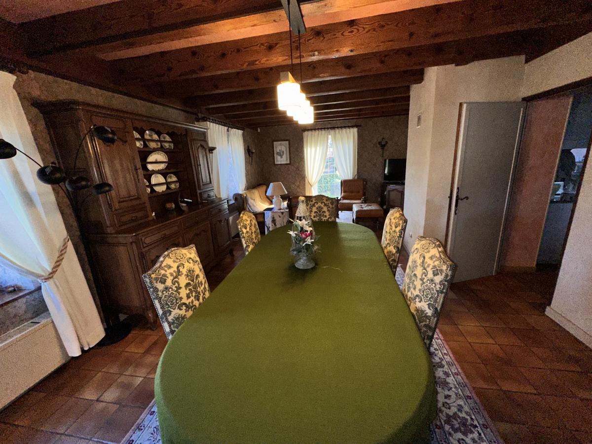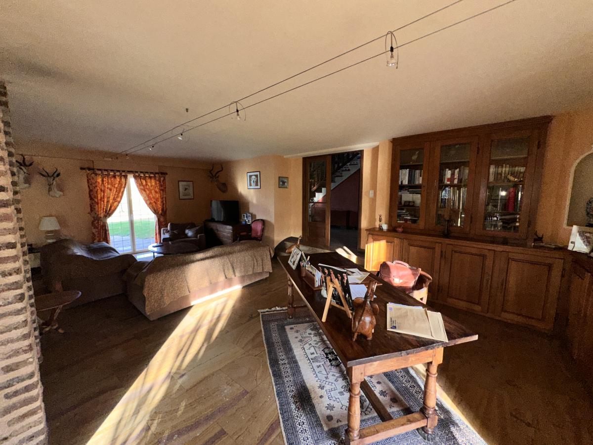 Une maison ancienne superbement rénovée associant avec harmonie le style ancien avec le contemporain, construite sur 2 niveaux. Le rez-de-chaussée avec son hall d'accueil donne accès à un séjour avec cheminée, une salle-à-manger avec coin billard ; une cuisine avec salle-à-manger équipée d'un four à pain, un salon, un bureau avec une cheminée. Depuis la cuisine, on accède à une buanderie, une cave, un débarras et aux 2 garages équipés de portes électriques. WC indépendant.