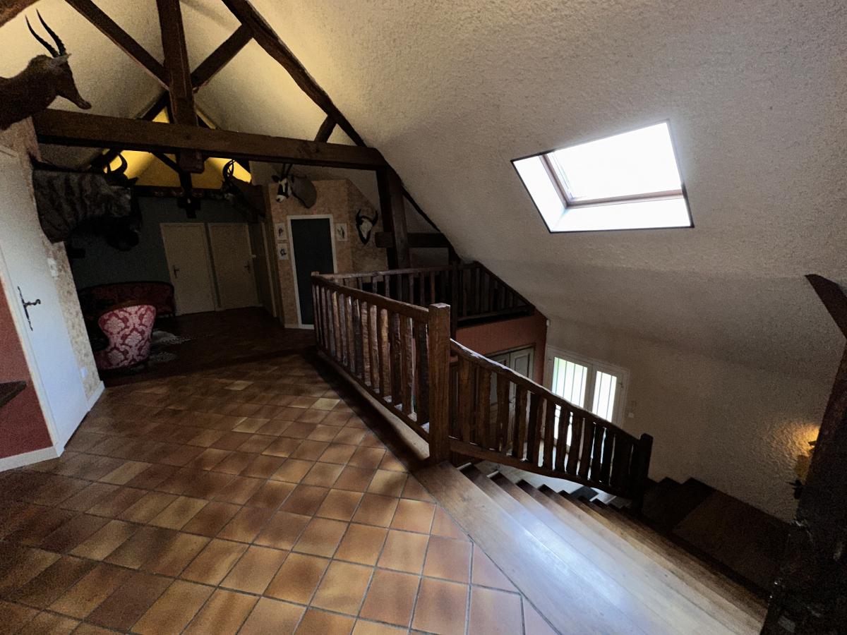 Dans le hall se dresse un magnifique escalier qui dessert l'étage supérieur où des dégagements donnent accès aux 4 chambres, à une salle d'eau, à une lingerie, et à un WC indépendant.