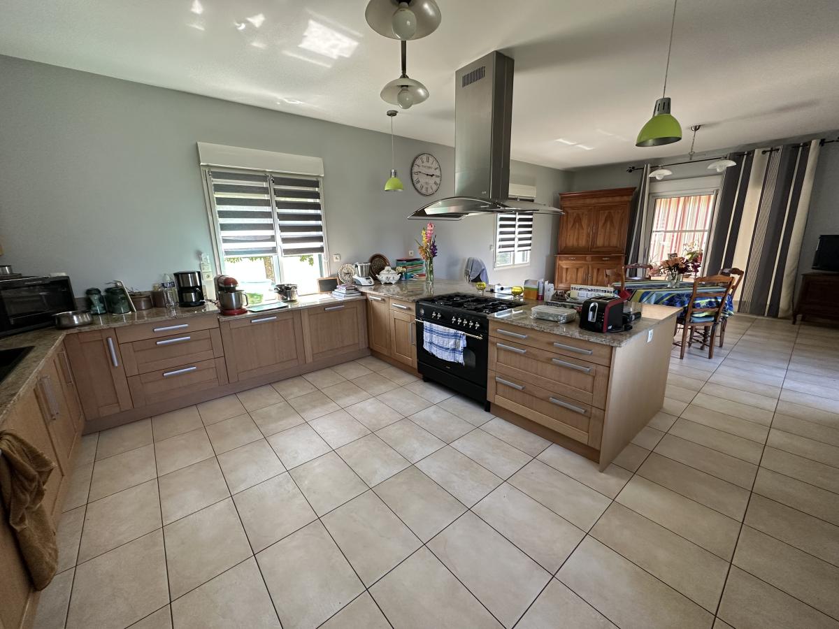 maison de campagne de plain-pied comprenant : une grande cuisine, une arrière cuisine, un grand salon-salle à manger, une belle véranda, un bureau, 3 chambres, un dressing, une salle de bain salle d'eau, un wc