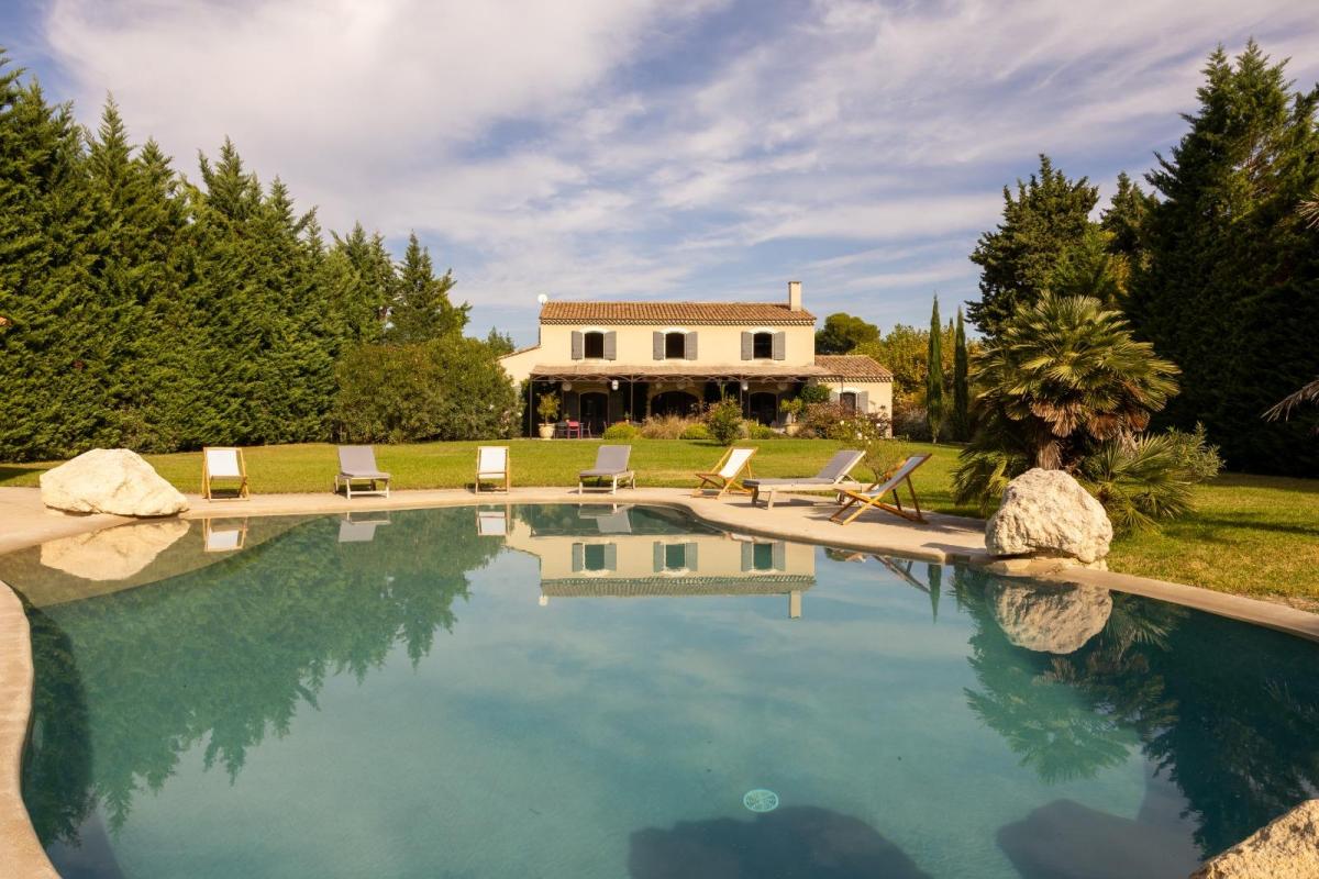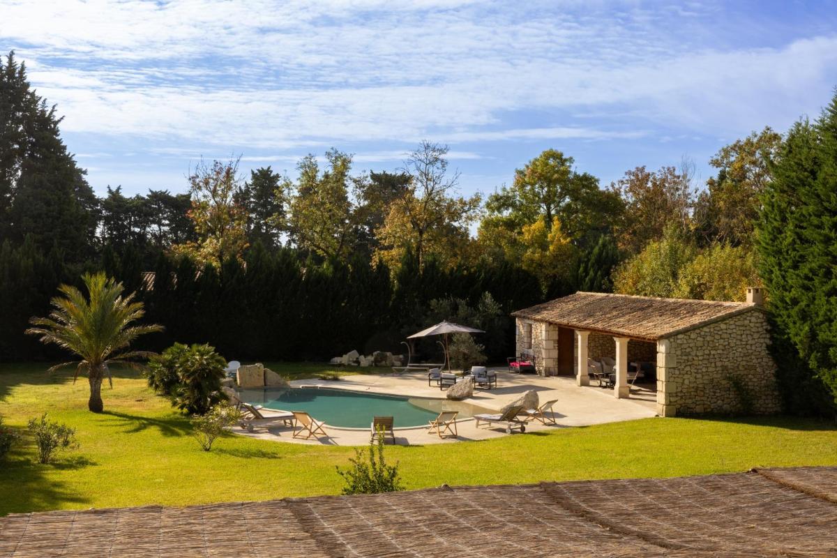 NOVES,  Située au cœur d’un environnement totalement préservé, à deux pas du centre village , à proximité de la gare TGV et des Alpilles, cette propriété d’exception marie l’élégance des matériaux nobles à l’âme authentique du mas provençal. Imaginée par un architecte de renom et réalisée par un maître d’œuvre appliqué et passionné, elle offre un cadre de vie raffiné où tradition et modernité se répondent avec harmonie !  Une architecture qui se veut chaleureuse inspirée du mas d’antan , des finitions haut de gamme : bois massif, pierre naturelle, ferronnerie sur-mesure, portes anciennes, carreaux ciments, enduits traditionnels revisités . Un agencement contemporain pensé pour optimiser lumière, confort et circulation des espaces. Des équipements à la pointe de la technologie  : domotique, chauffage par pompe à chaleur, isolation soignée, huisseries et menuiseries de qualité, systèmes de sécurité , multimédia intégrés...  Côté SUD , un jardin de 3 940 m² ( entièrement constructible) conçu pour mettre en valeur une végétation locale , offre un véritable écrin de verdure . Une oliveraie privée confère au lieu une atmosphère authentique propice à la détente et aux moments de convivialité !  Une vaste terrasse ombragée par une treille accueille un spacieux et agréable coin repas extérieur, idéal pour recevoir famille et amis lors des belles soirées d’été. La piscine à débordement, élégamment dessinée, séduit par ses finitions soignées et son espace détente et pour compléter cet ensemble, un pool house XXL de 100 m² en pierres et poutres apparentes  invitant au farniente sous le soleil de notre belle Provence, ainsi qu'un double garage avec cave enterrée.  Vous l'aurez compris, cette demeure proposée en exclusivité par votre notaire, est à venir découvrir , sous tous ses aspects et sans plus tarder ! DPE : B  ... Les informations sur les risques auxquels ce bien est exposé sont disponibles sur le site Géorisques : www. georisques. gouv. fr - Consultez nos tarifs : immobilier.notaires.fr