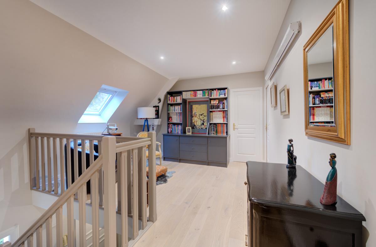 À l’étage, l’espace nuit se compose d’une superbe suite parentale avec dressing et salle de bains privative, et de trois autres chambres spacieuses, dont l’une dispose également de sa propre salle d’eau.