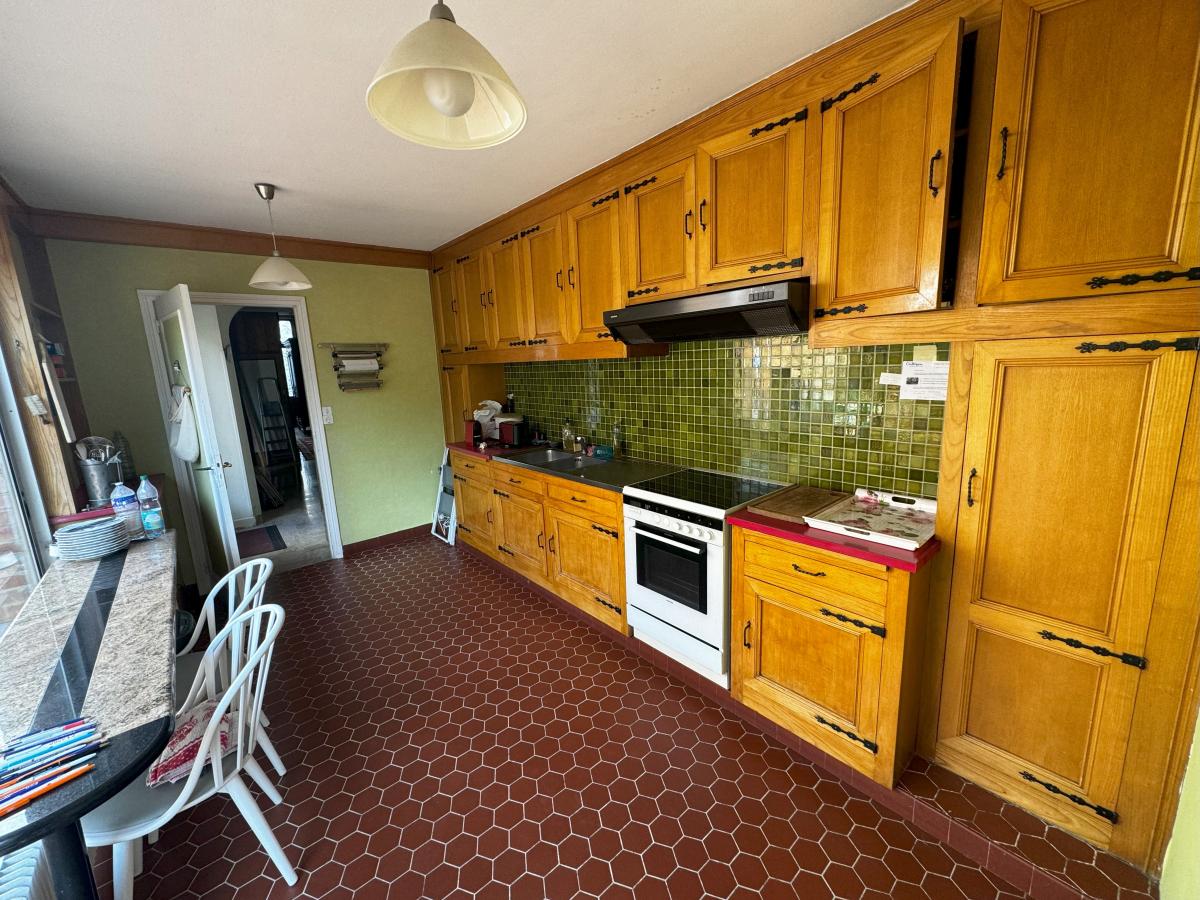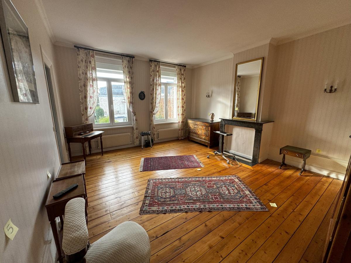 - Entrée, séjour de 46m² avec cheminées, cuisine de 13m², salle à manger ou bureau de 14m², wc.