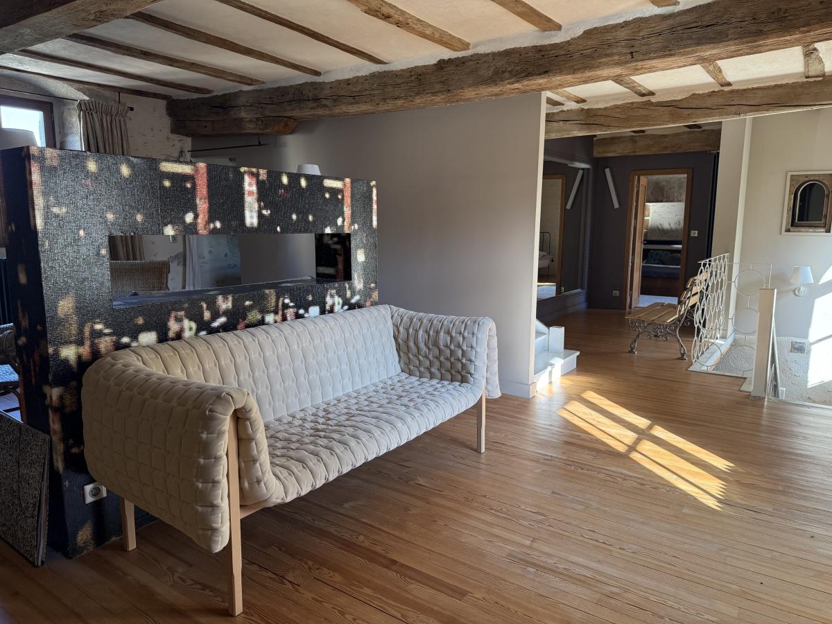 Premier étage: vaste suite d'environ 100m² comprenant chambre, dressing, salon de lecture, salle d'eau, salle de bains, wc.