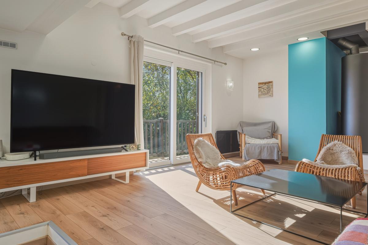 Le rez-de-jardin comprend une buanderie, plusieurs espaces de rangement, une cave à vin, ainsi qu’un appartement indépendant composé d’une cuisine équipée ouverte sur un vaste séjour/salle à manger de 37 m² avec poêle à bois, une chambre de 19,84 m², une salle d’eau avec WC et un hammam.