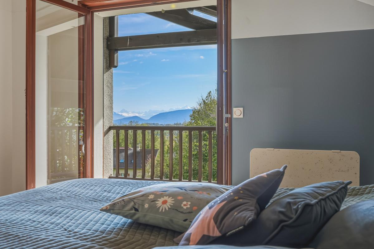Au second niveau, une mezzanine de 19 m² dessert une chambre de 25 m² ainsi qu’une superbe suite parentale de 40 m². Celle-ci comprend une chambre de 24,6 m² ouvrant sur une terrasse couverte offrant une vue imprenable sur les Alpes, un dressing, une salle de bains et des WC séparés.