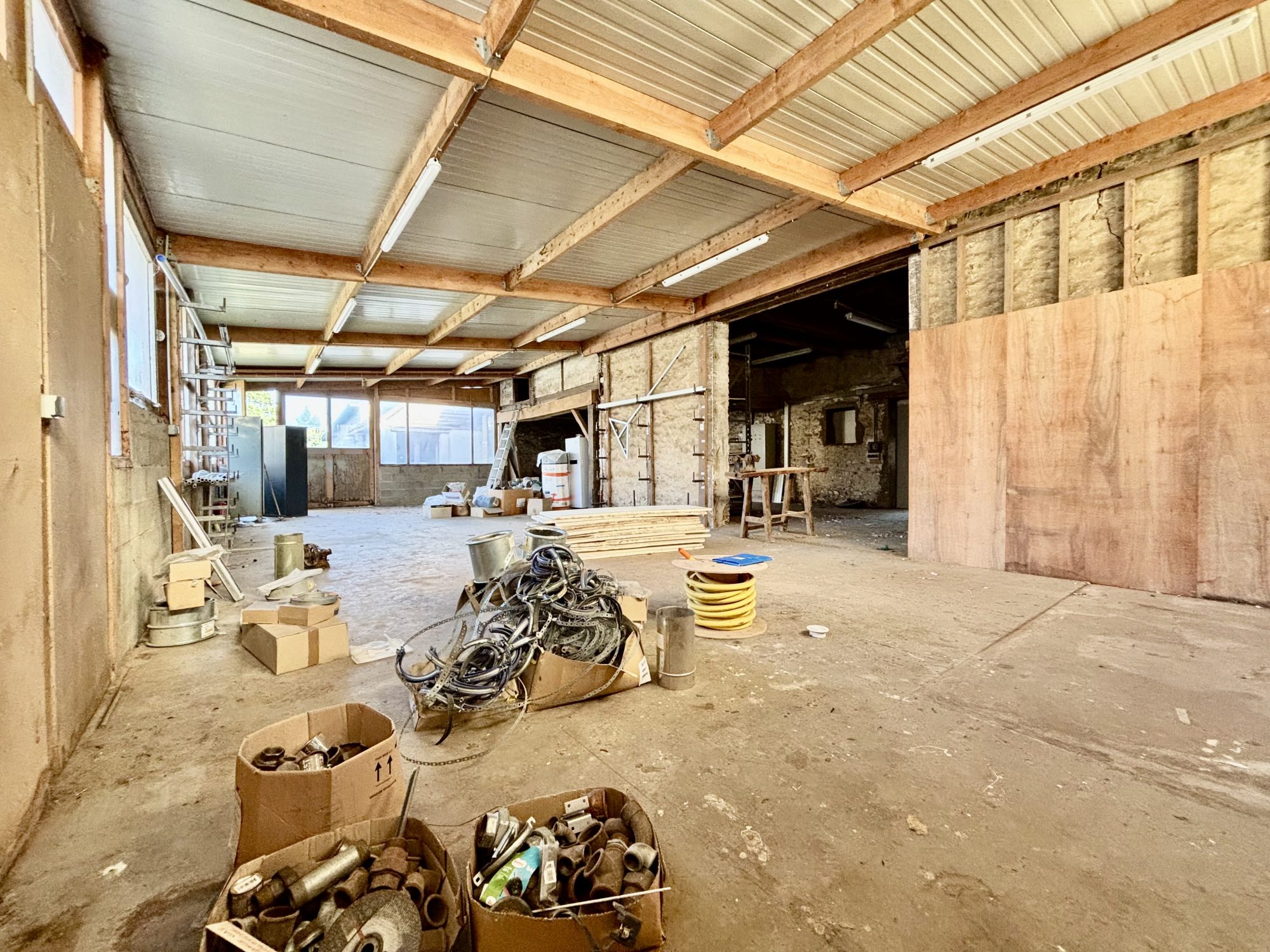 La propriété se compose de plusieurs bâtiments totalisant environ 700 m² de surface. Une partie des bâtiments est équipée en électricité, eau et dispose d’un système de chauffage, permettant une utilisation immédiate selon vos besoins.