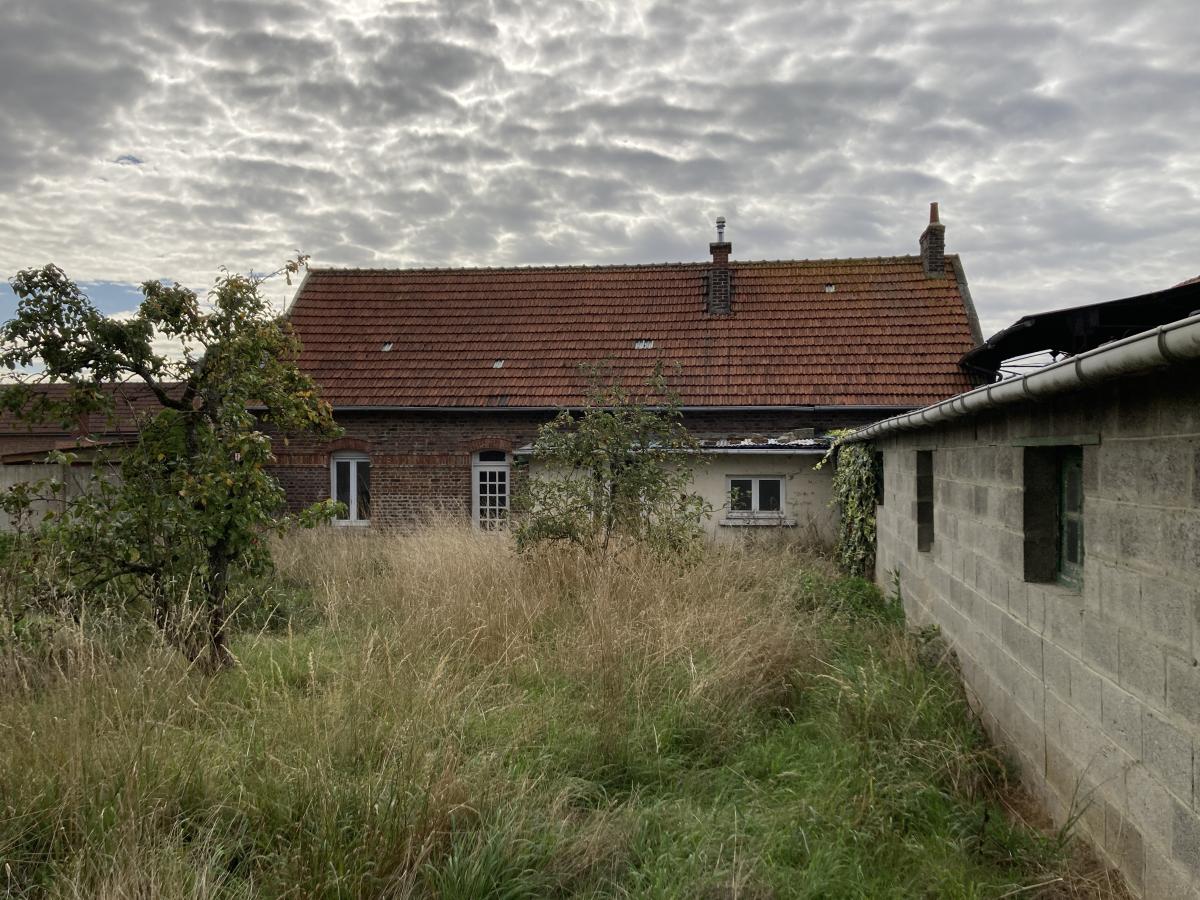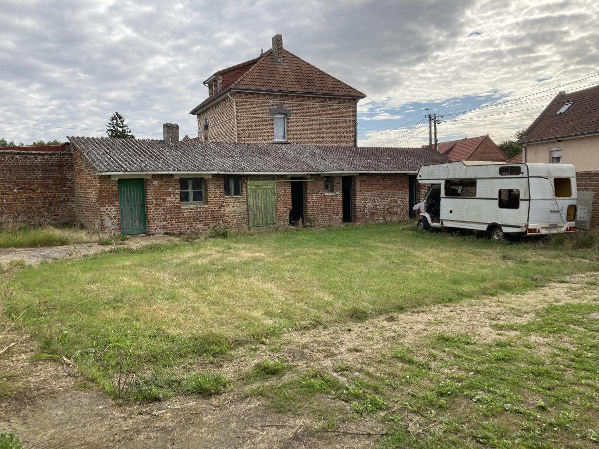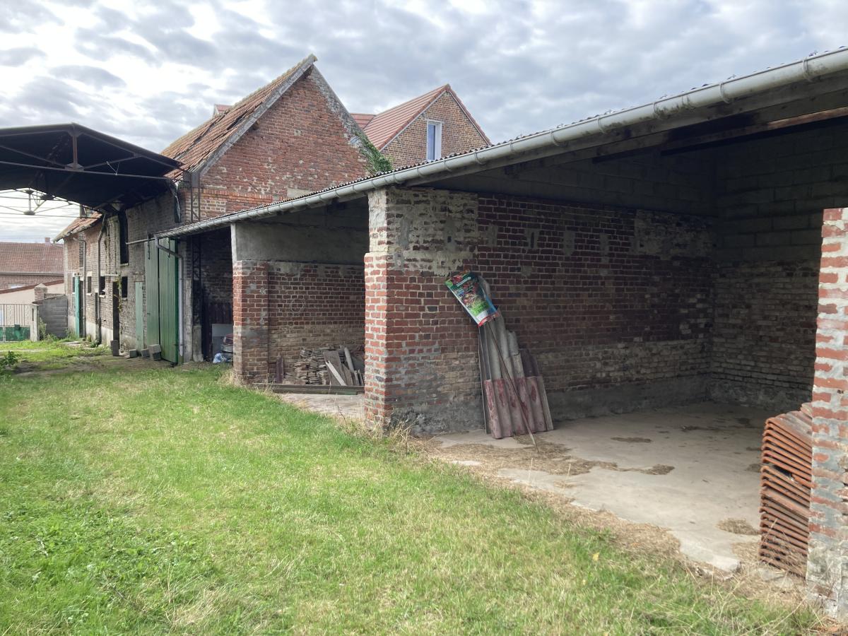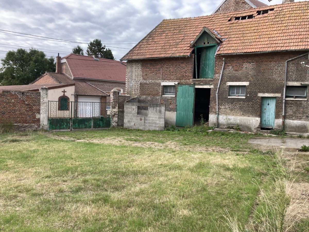 EN EXCLUSIVITE - FAMPOUX - ARRAS Est - PAS DE CALAIS 62 - CORPS DE FERME A RENOVER bâti sur 1576m² et comprenant : hall 8m², salle 22.5m², salon 15.5m², cuisine 8m², arrière cuisine 5m², sdb 4.5m², wc, 2 chambres (13.5m² et 14m²). A l'étage : grenier 63m². Chauffage central gaz et menuiseries pvc double vitrage. Cave, Grange, étables, hangar, garages, cour et jardin.