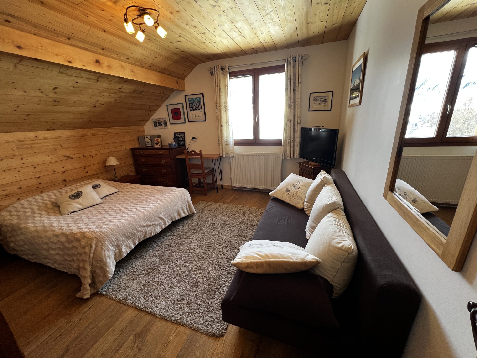 Nous vous présentons un magnifique chalet meublé et équipé prêt à vous accueillir. Son exposition, sa vue panoramique sur les montagnes et sa proximité du frond de neige en font un bien d'exception.