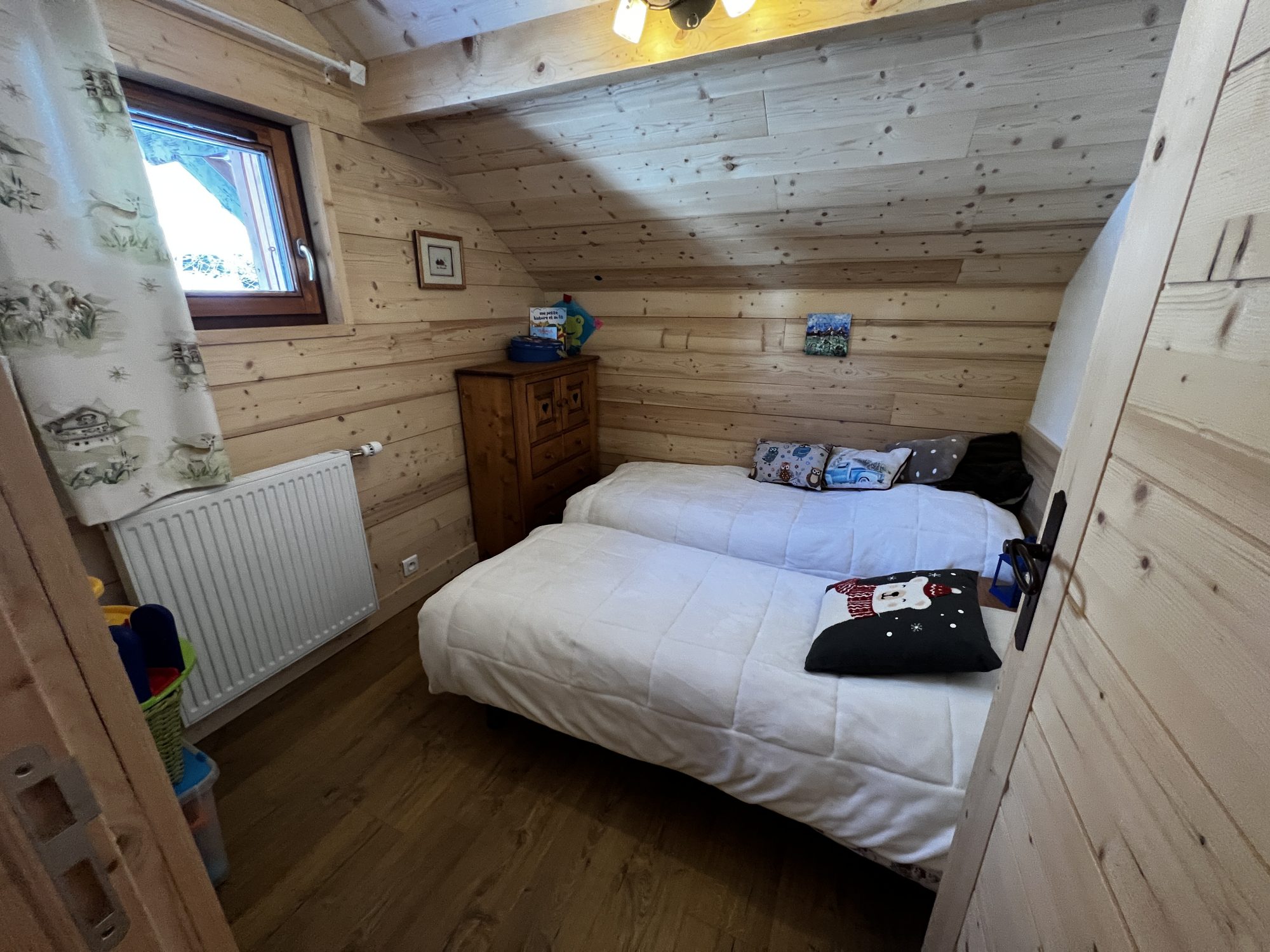 Ce chalet est entièrement rénové et dispose d'une surface au sol de 143 m² sur 4 niveaux. Celui-ci est composé de 8 pièces, dont 6 chambres, 2 salles de bains et 1 salle d'eau. La cuisine ouverte, très fonctionnelle, est aménagée et équipée. Un sas d'entrée, une buanderie et un garage avec porte motorisée complètent ce bien.