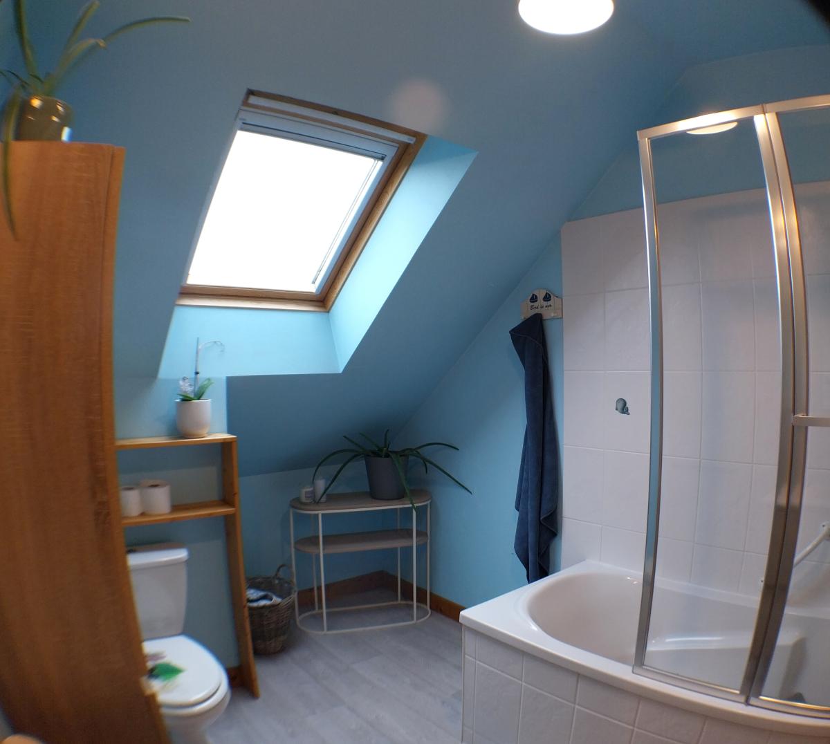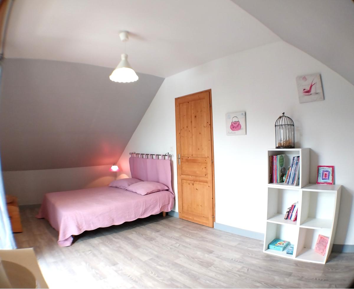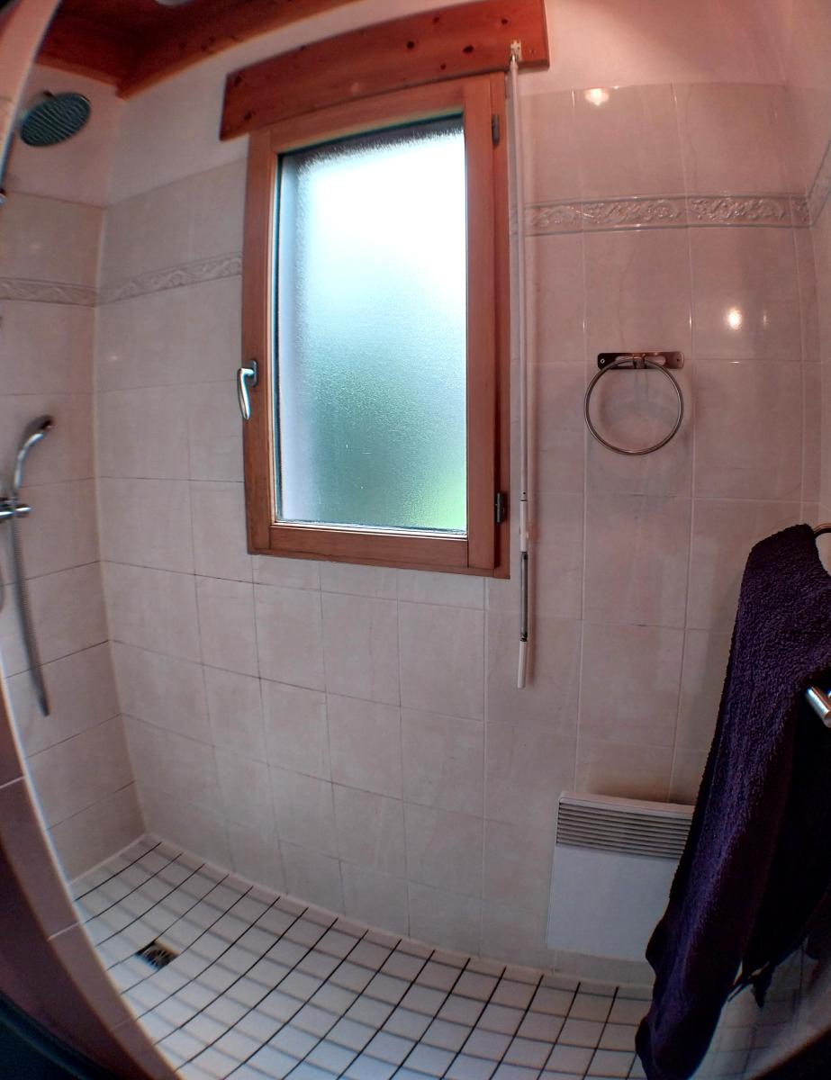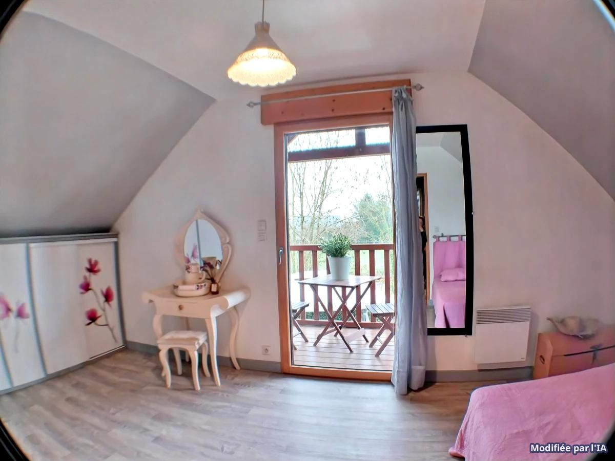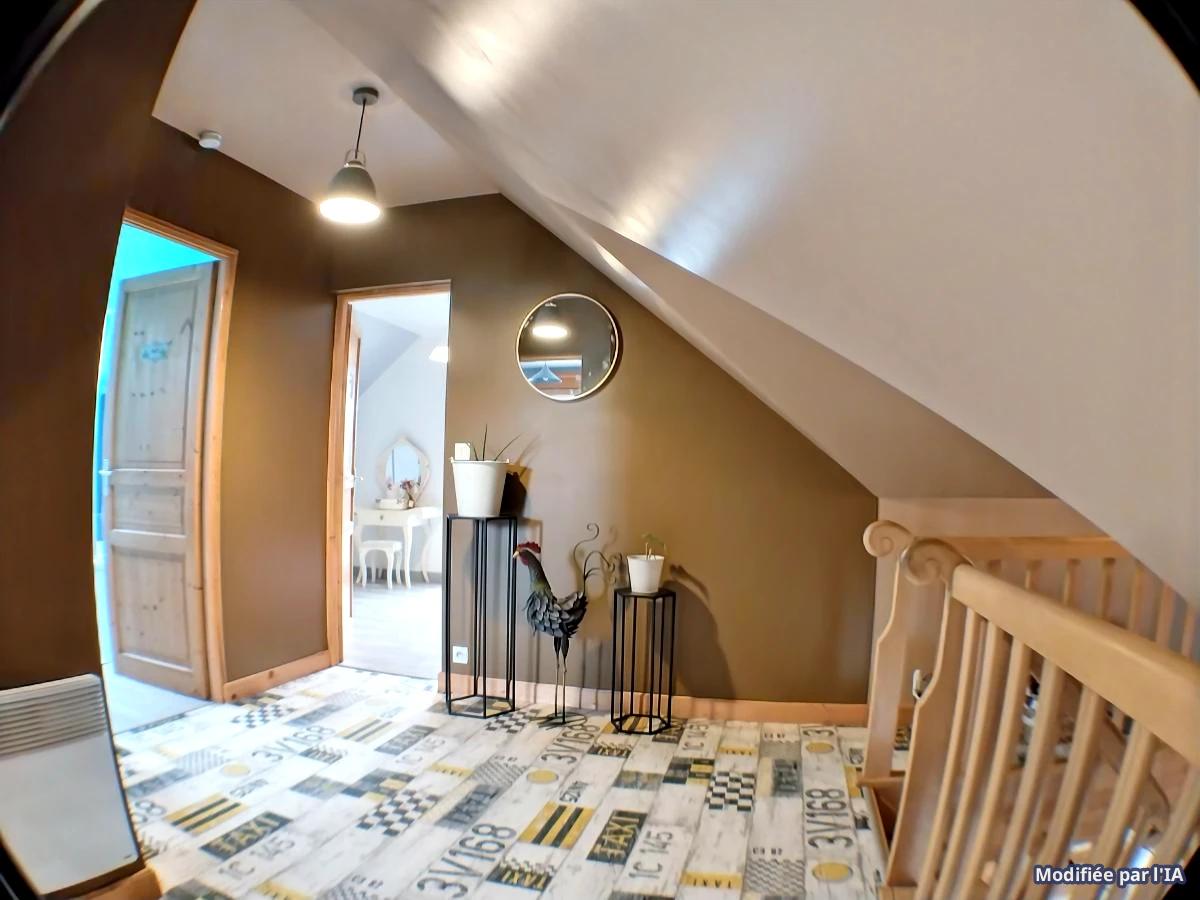- à l'étage sous rampants: mezzanine desservant deux chambres dont une avec balcon, salle de bains avec WC.