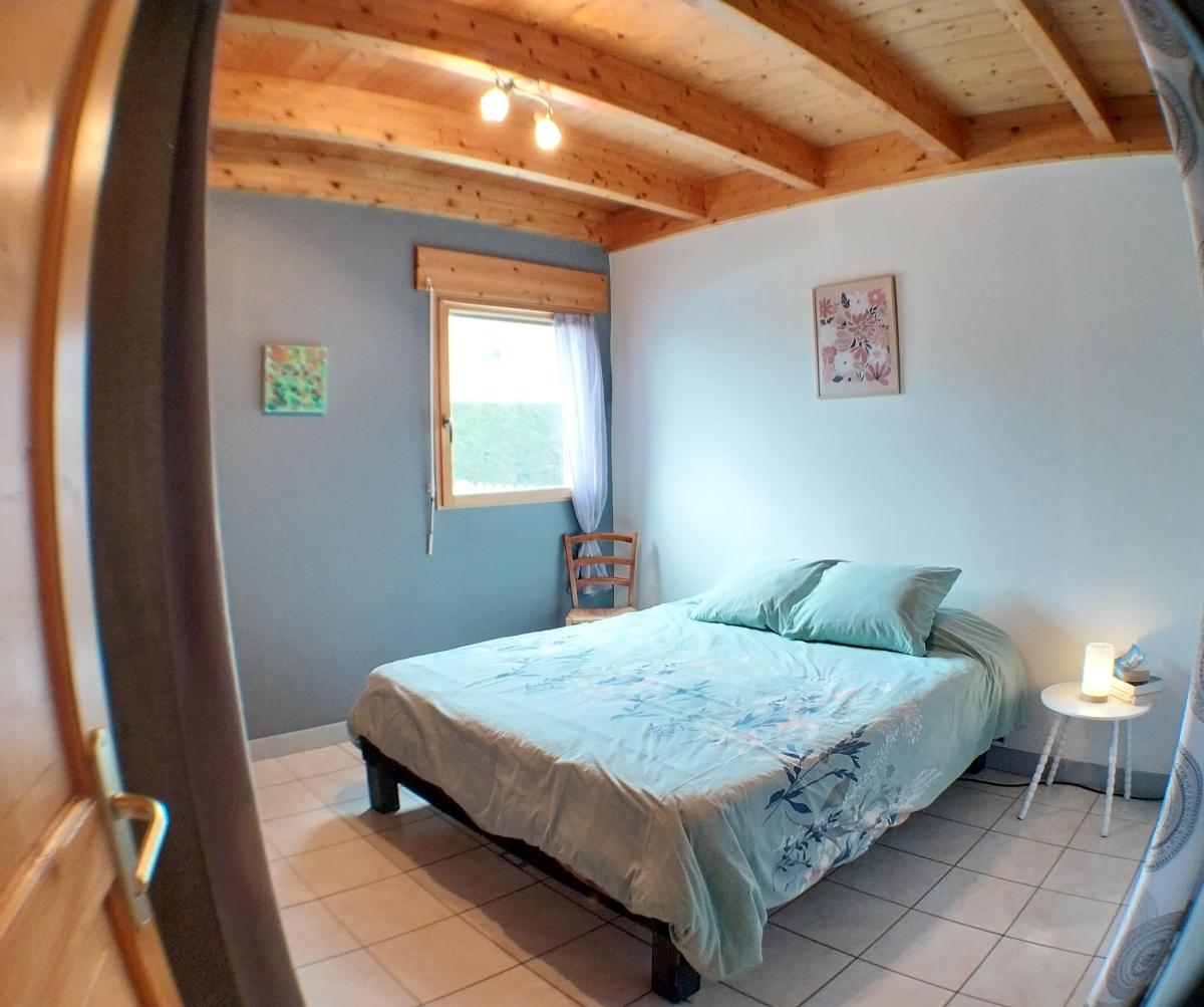 - au rez-de-chaussée: entrée sur pièce de vie salon/séjour avec cuisine aménagée et équipée, WC, dégagement desservant deux chambres, salle d'eau