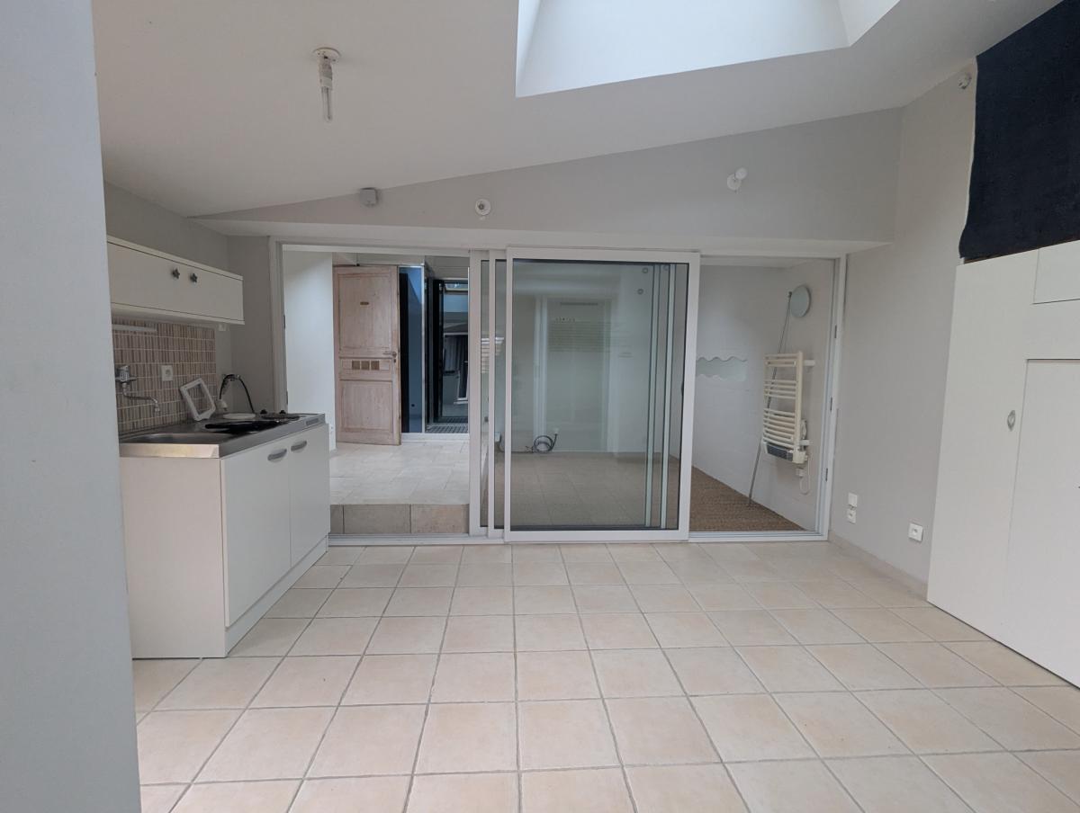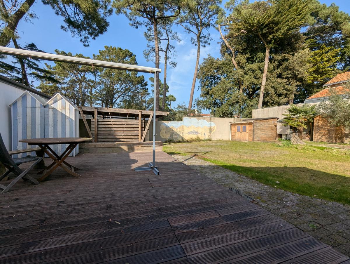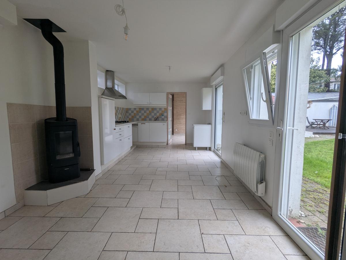 Quartier des Sylphes/ Mindin à proximité de la promenade du bord de mer et du Serpent de Mer, propriété comprenant une pièce de vie avec poêle à bois, une cuisine aménagée, une chambre parentale avec salle de bains- wc, un espace bureau desservant le haut, un wc et un espace studio pouvant devenir indépendant. A l'étage, une grande mezzanine, une grande chambre et un dernier espace sans chauffage. Menuiseries en PVC, volets roulants électriques.