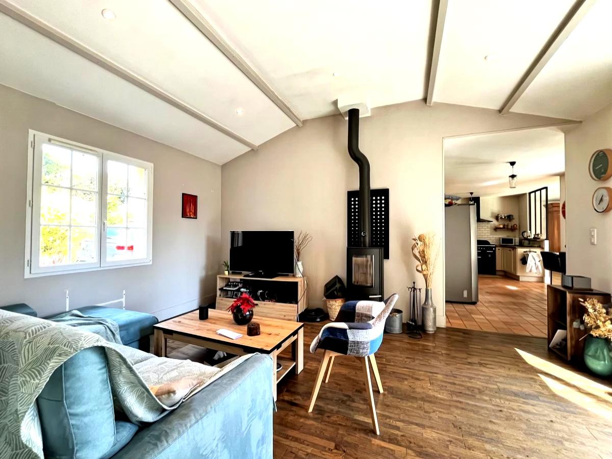 PORNIC, au calme d'un lieudit proche du lycée, maison récente aux prestations soignées. Elle offre au rez-de-chaussée : entrée, cuisine aménagée et équipée avec coin cellier, salle à manger donnant sur une terrasse sans vis à vis et bien exposée, salon cosy avec poêle, deux chambres dont une suite parentale avec salle d'eau, bureau, toilettes. A l'étage, un palier dessert deux chambres, une lingerie et une spacieuse salle de bains avec douche et baignoire. S'y ajoute un garage indépendant, un poulailler.
