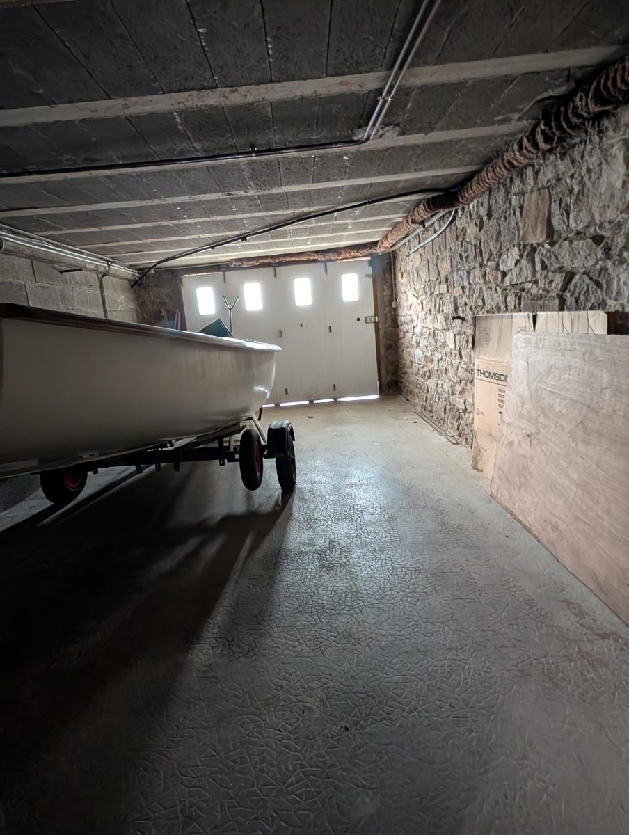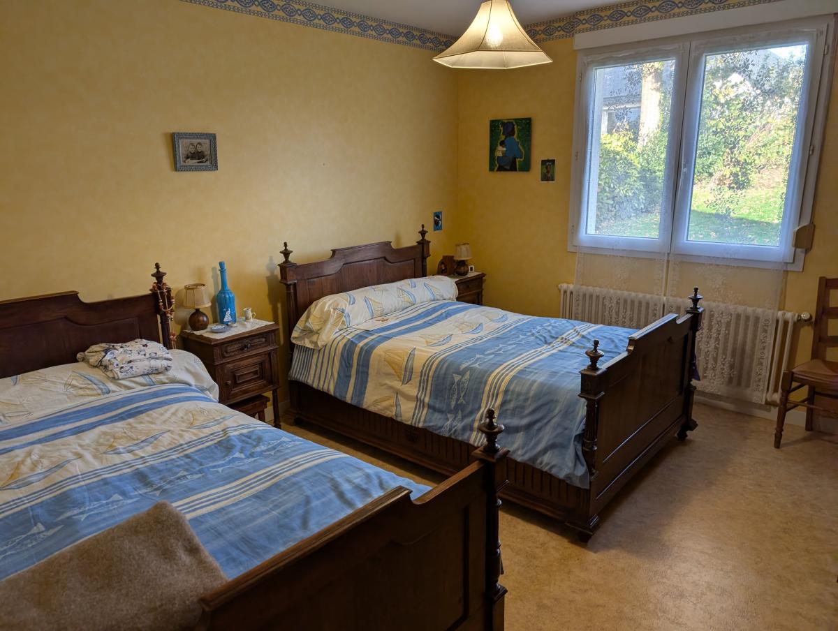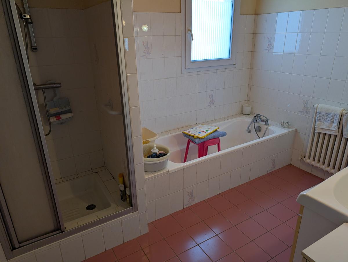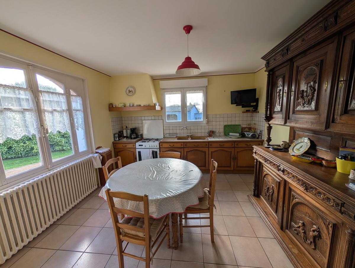 Au rez de chaussée surélevé : entrée, cuisine, séjour-salle à manger avec cheminée, deux chambres, salle de bains avec douche, arrière-cuisine, WC.