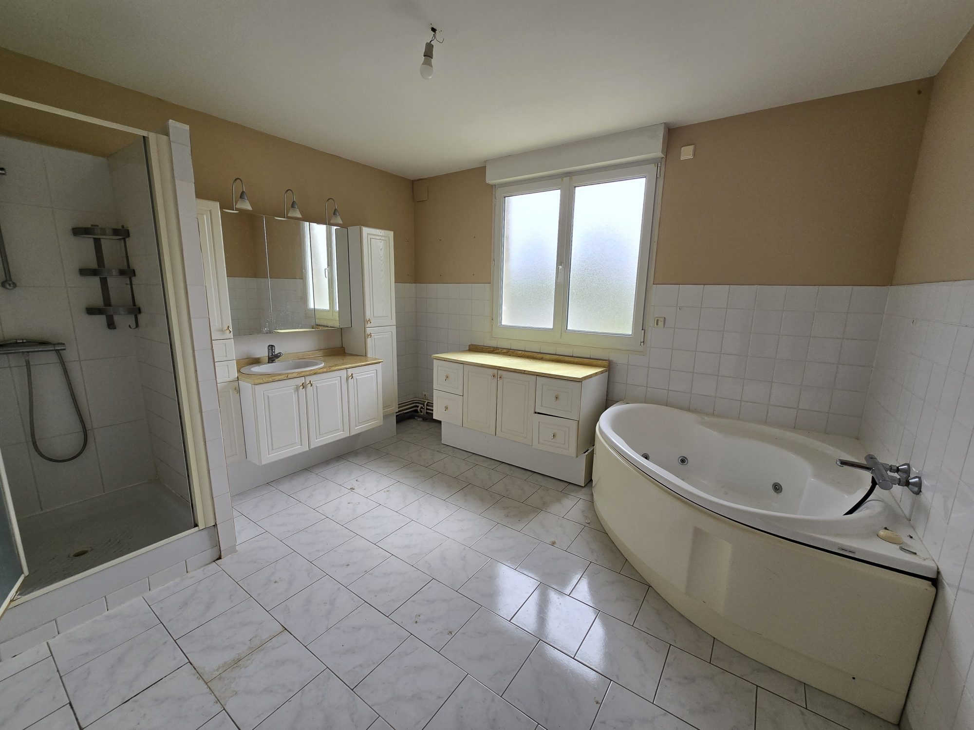 Au 1er étage : trois chambres, salle de bain + douche, dégagement, wc.
