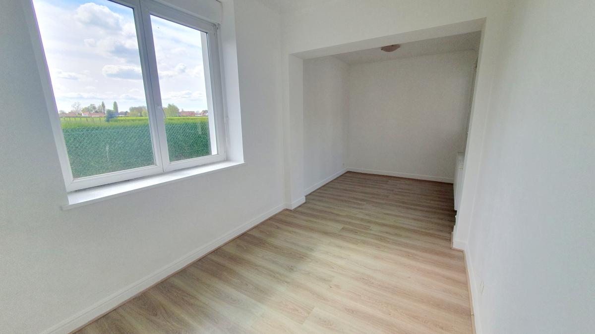 au 1er étage appartement loué 620€, comprenant hall entrée, séjour, cuisine aménagée, 2 chambres, wc, cave, parking