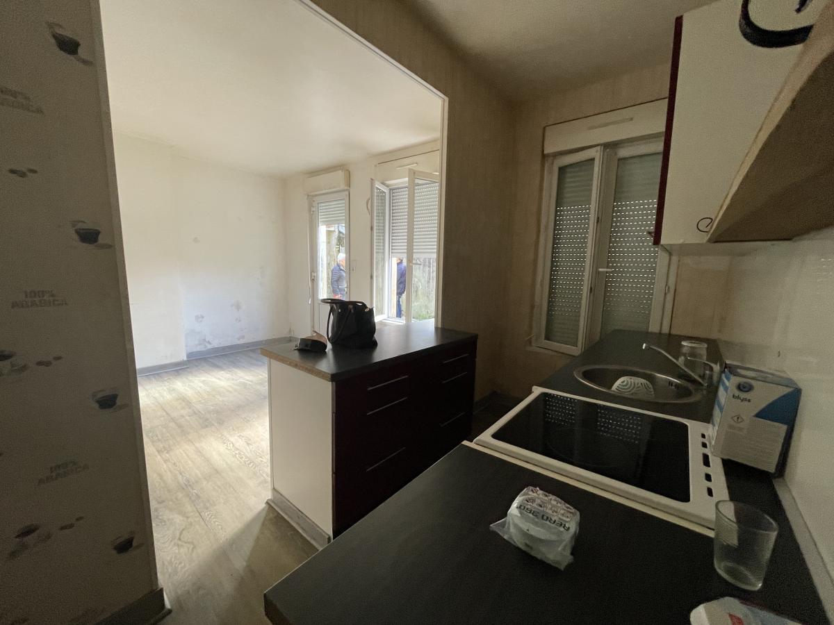 1er logement en RDC, rénové, équipé PMR (41m²/2P) : Entrée dans pièce de vie avec espace cuisine, puis chambre avec en enfilade salle d'eau dont WC (DPE/D GES/B entre 780€ et 1 100€ /an en estimations d’énergie du logement)