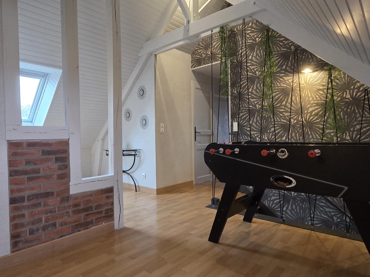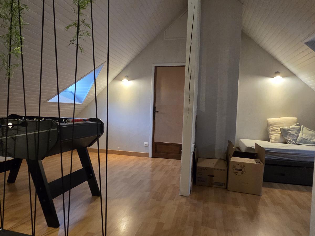 - A l’étage : mezzanine, deux chambres, une salle d’eau, un wc de type sanibroyeur, et un petit bureau mansardé.