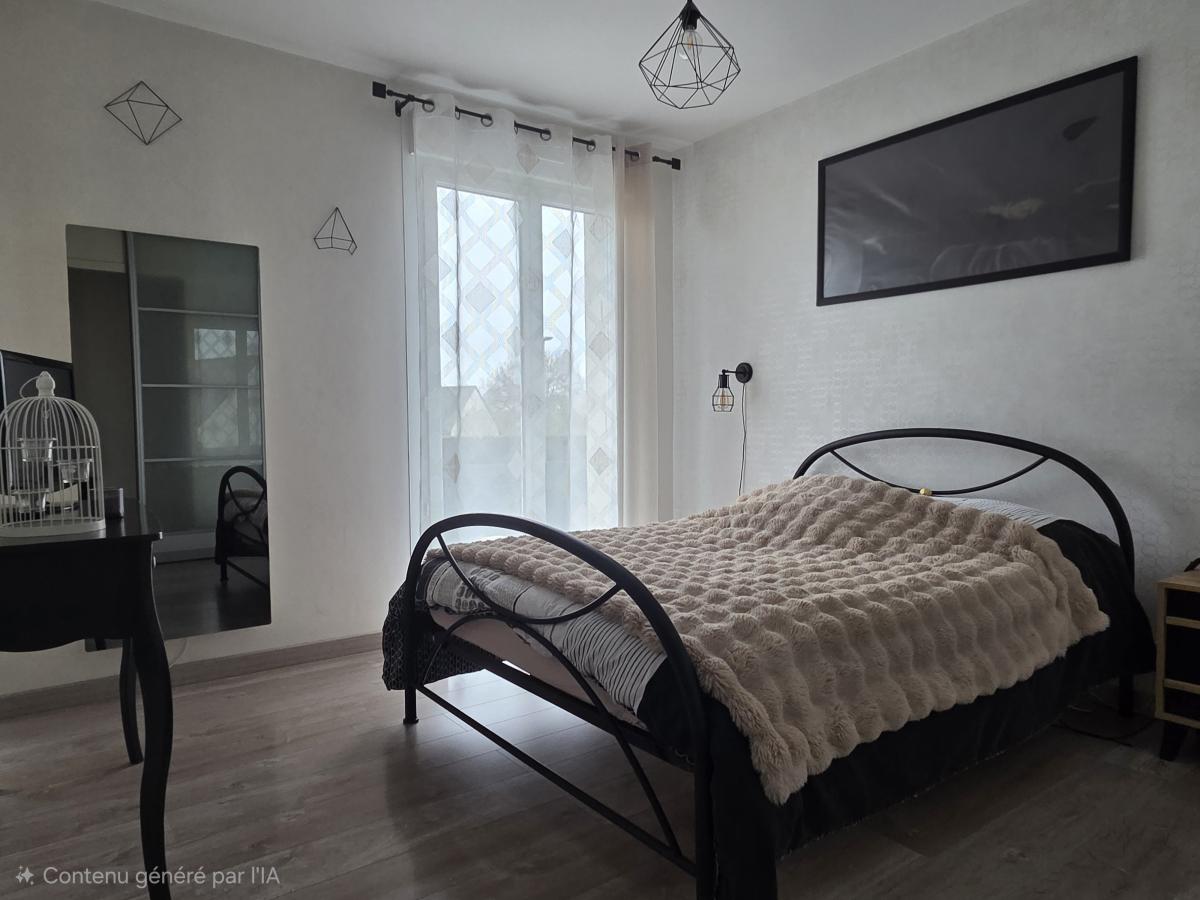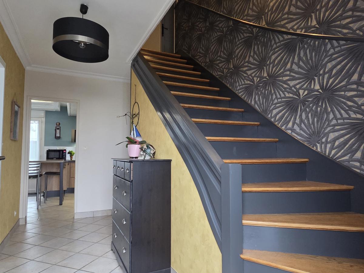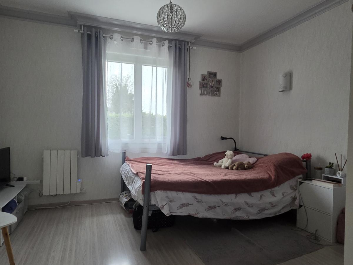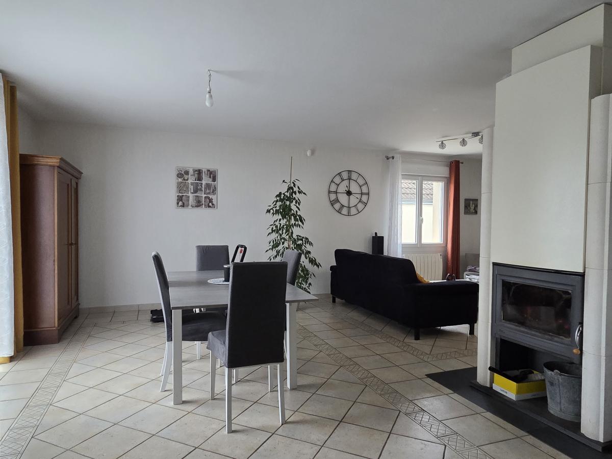 - Au rez-de-chaussée surélevé : entrée avec départ escalier menant à l’étage, séjour-salon avec cheminée insert, une cuisine ouverte aménagée et équipée, un couloir desservant une salle de bains, deux chambres dont une suite parentale avec un dressing, et WC.