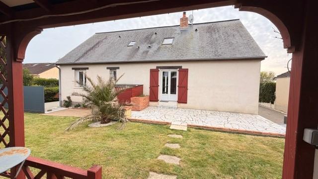 Jardin autour avec pergola, terrasse et abri pour le bois, barbecue, terrain de pétanque, descente bitumée, portail et portillon, clôtures tout autour.