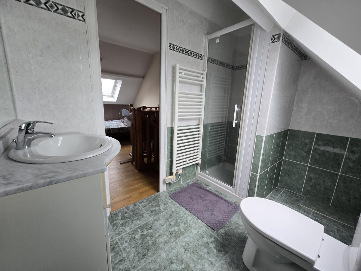 Un espace communiquant par la maison mais pouvant être indépendant qui comprend une grande pièce et à l’étage, une chambre et une salle d’eau avec WC. (32 m² habitables)