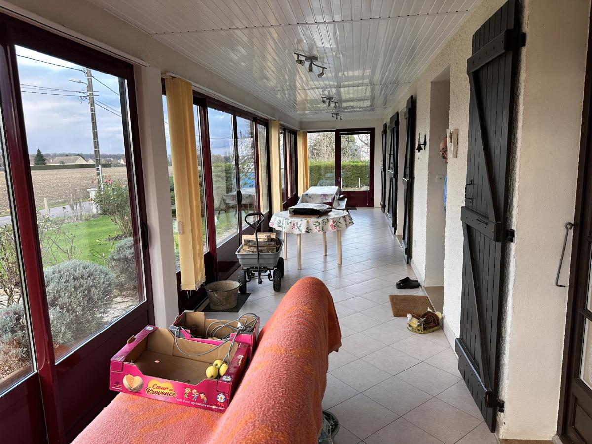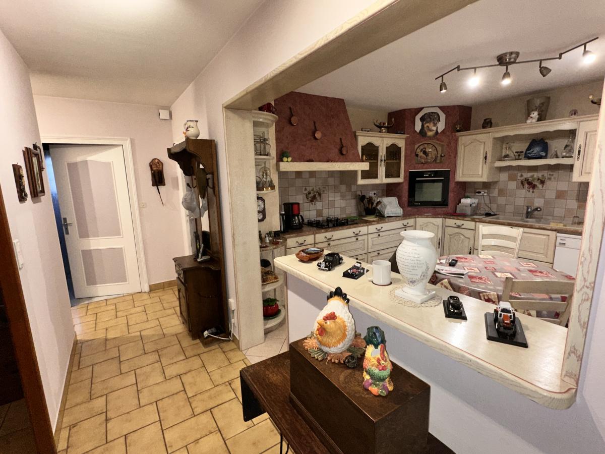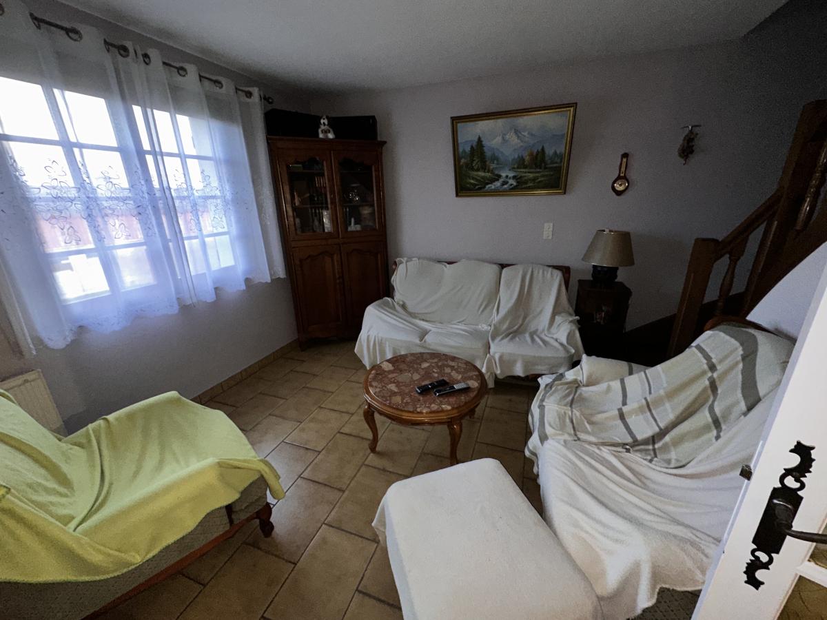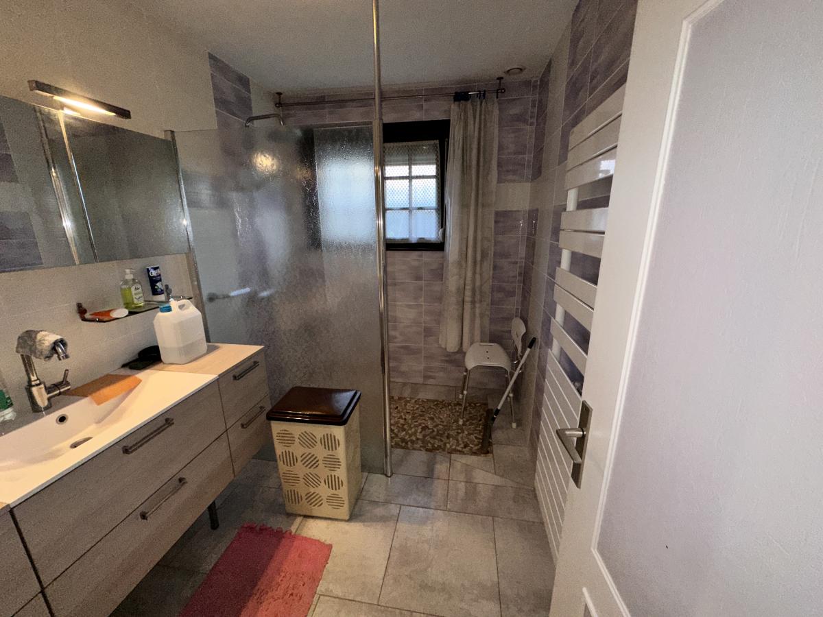 - À l'étage : entrée par la véranda, cuisine ouverte sur la salle-à-manger/salon, une chambre, salle d'eau avec douche à l'Italienne, WC indépendant, escalier dans le salon montant au 2ème étage, terrasse ;