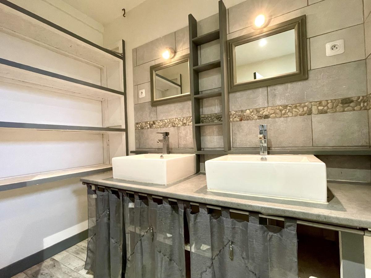 Elle se compose au rez-de-chaussée d'un beau séjour de 45 m² très lumineux , avec cheminée/insert ( et bouches de chaleur dans les chambres), cuisine ouverte aménagée et équipée , arrière cuisine , entrée de service , deux chambres , une salle d'eau et wc .