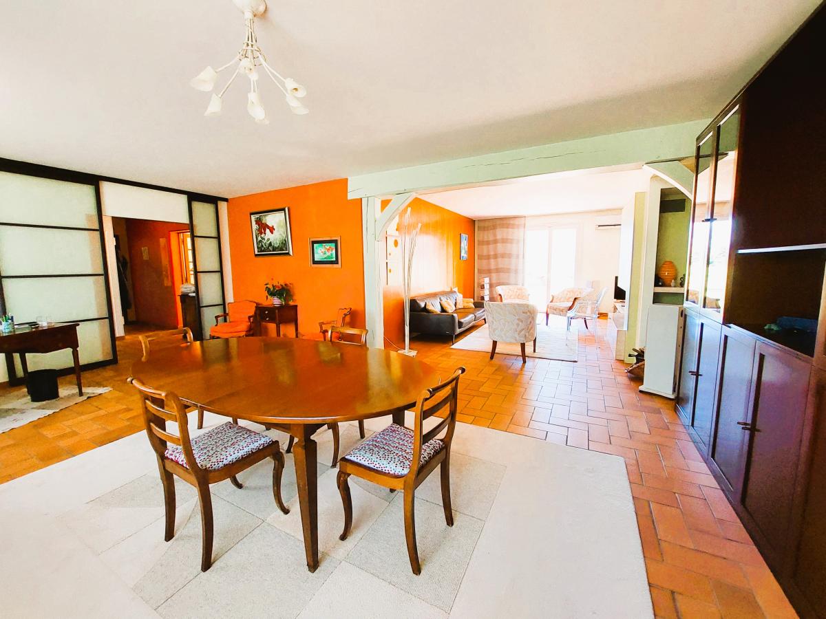 Maison comprenant : au rez de chaussée : entrée, séjour - salon avec cheminée de 51m², cuisine donnant sur terrasse, arrière cuisine, chambre avec salle d'eau attenante, wc