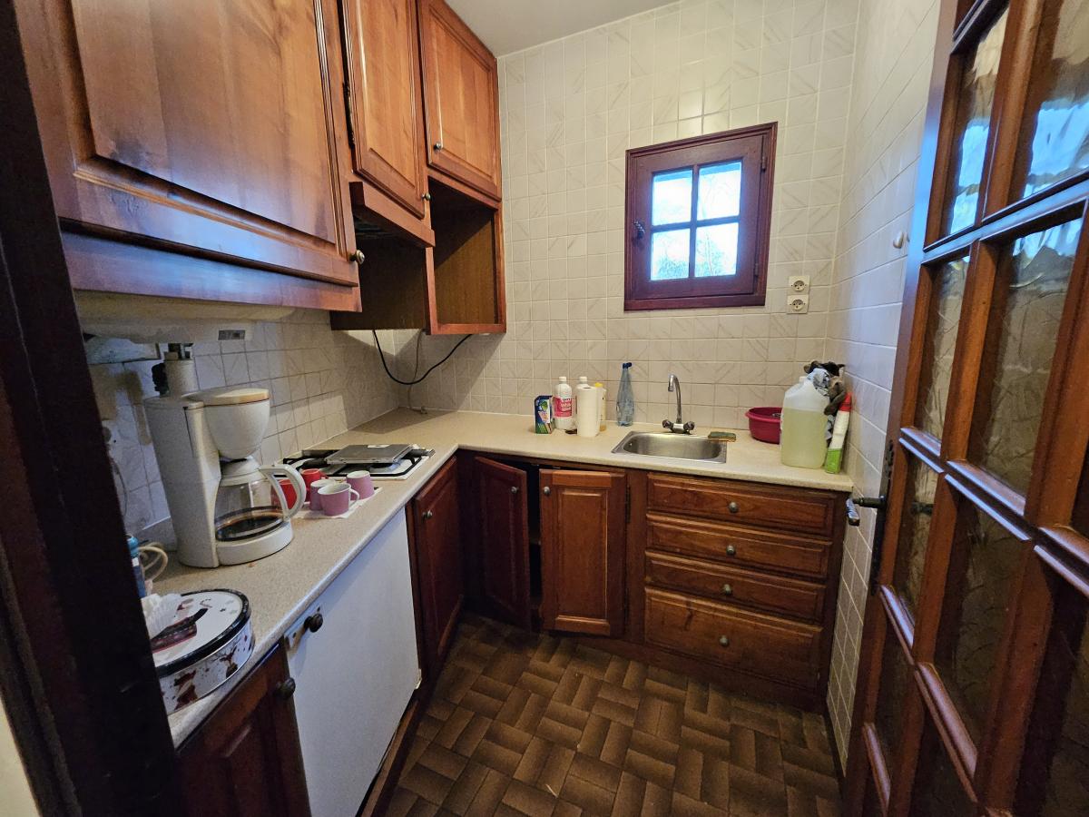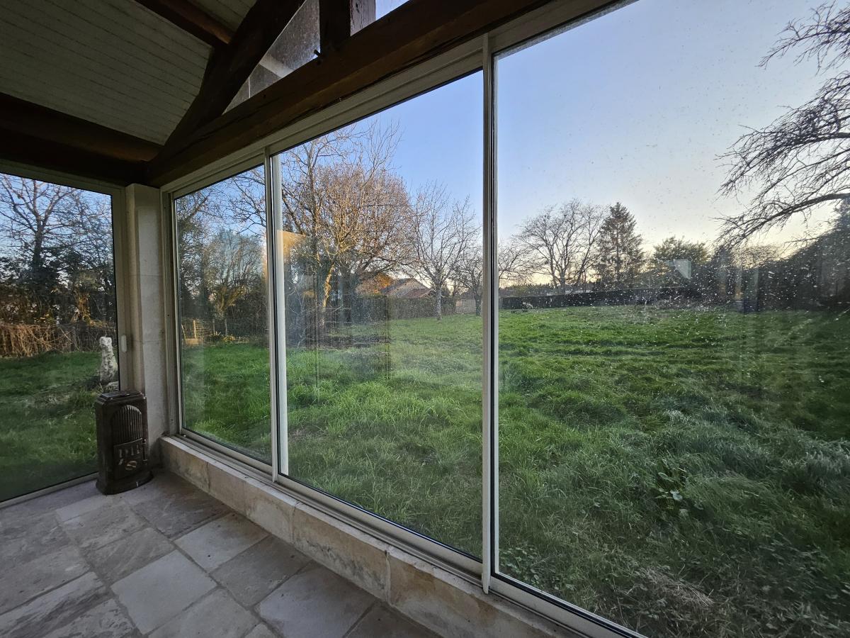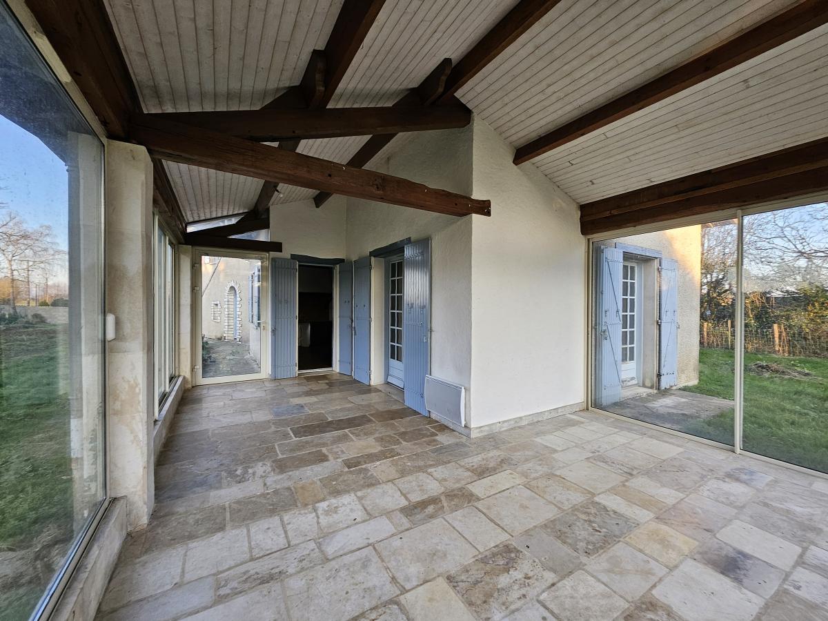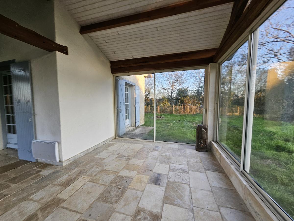Au rez-de-chaussée : Hall d'entrée, salon salle à manger avec cheminée et cuisine, vaste véranda, arrière cuisine, salle de bains, WC, deux chambres, grand cellier (ancien garage) ;