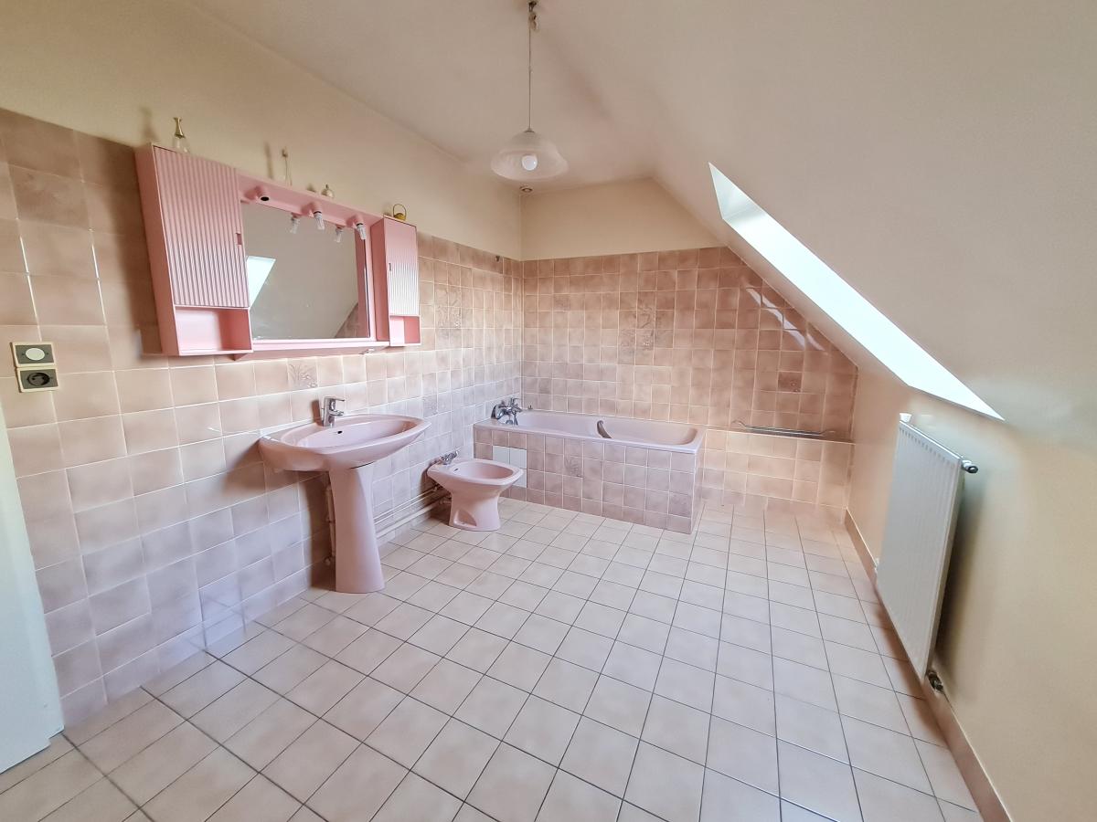 / au 1er étage: palier, wc, salle de bains (lavabo colonne, bidet, baignoire), deux chambres, bureau/ dressing, deux pièces en cours de rénovation.