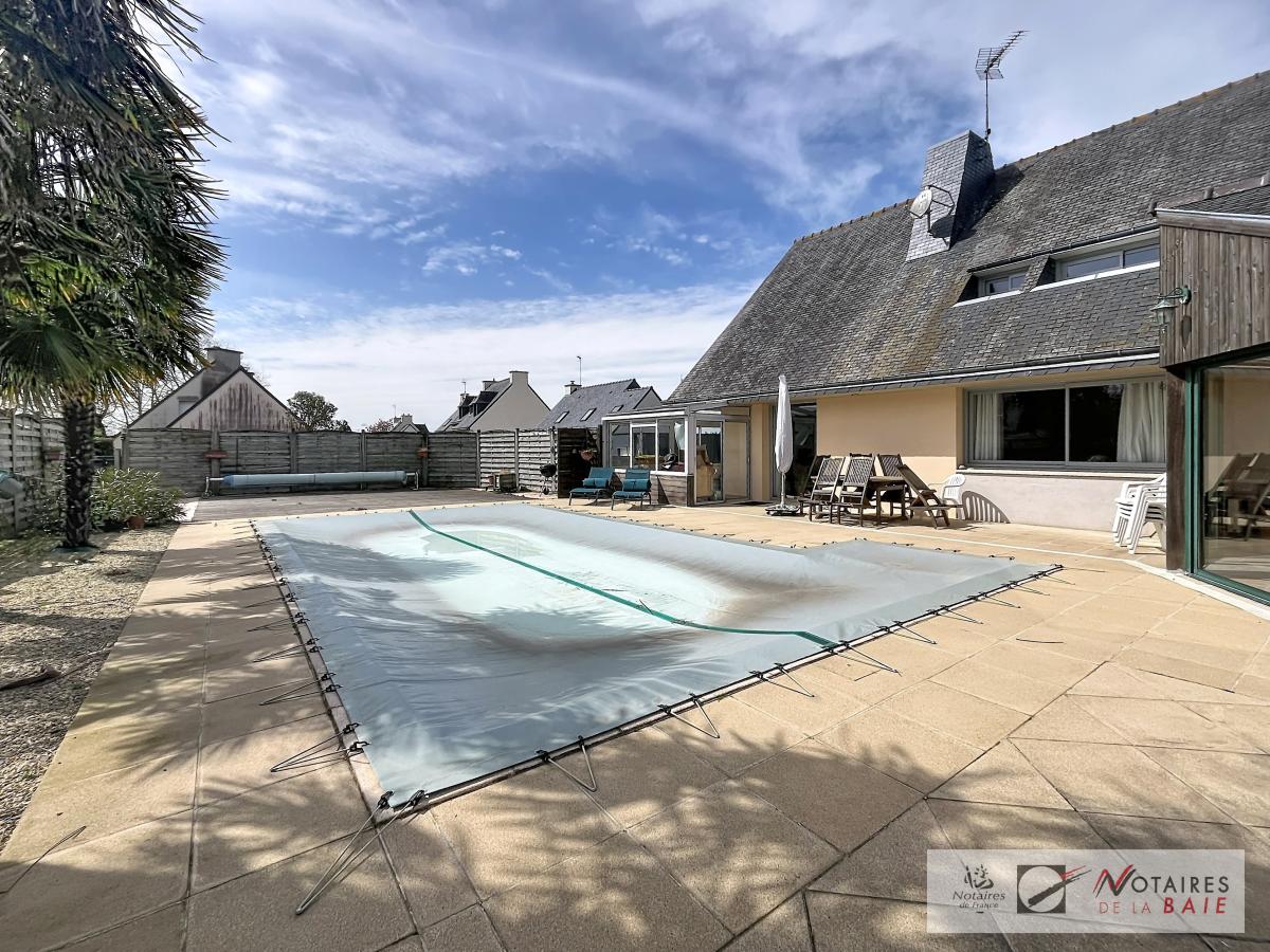 - Au rez-de-chaussée (sol marbre) : Véranda/sas, hall d’entrée, cuisine aménagée (accès terrasse couverte), arrière-cuisine, salle à manger avec cheminée centrale (double face), dégagement avec placard coulissant, « pièce de vie », dégagement, wc, 1 chambre, dressing, salle de bains – Véranda carrelée (isolée et chauffée) accès terrasse.