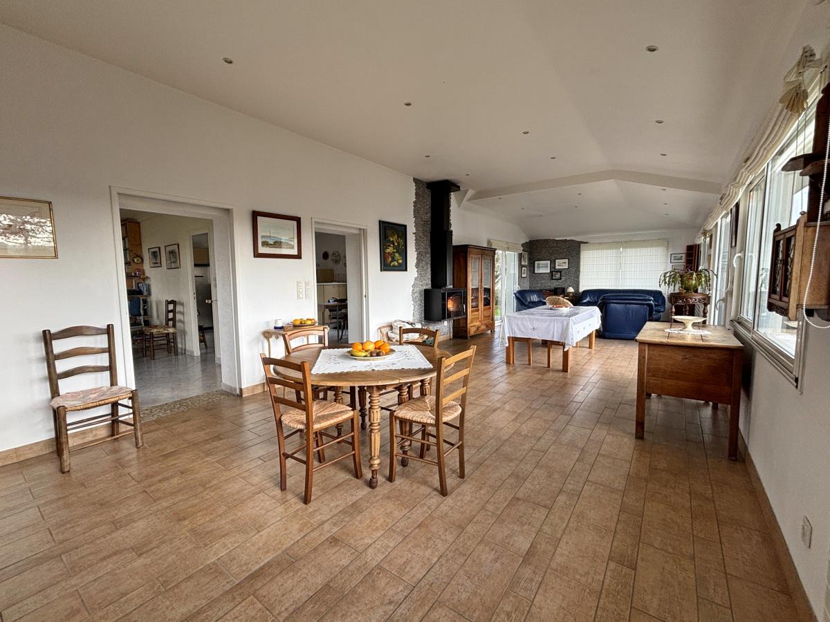 L’habitation dispose d’un vaste espace de vie d’environ 50 m², pensé pour le confort et la convivialité, d’une cuisine aménagée pratique au quotidien, de cinq chambres permettant d’accueillir une grande famille ou des invités, ainsi que d’un bureau de grande taille, parfaitement adapté au travail à domicile ou à une activité professionnelle.