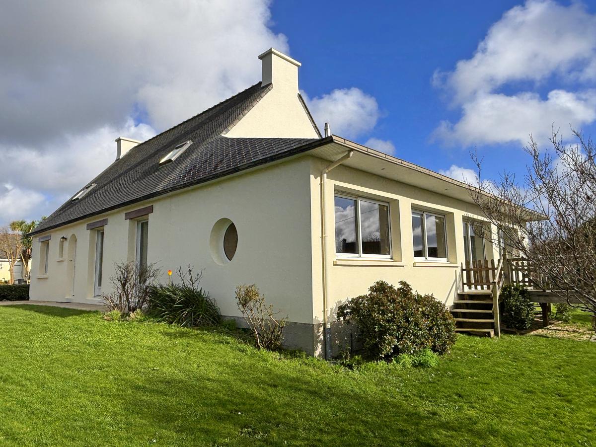 Située à Plouider, cette maison d’environ 180 m² offre un cadre de vie privilégié, alliant tranquillité et proximité immédiate des services et du littoral.