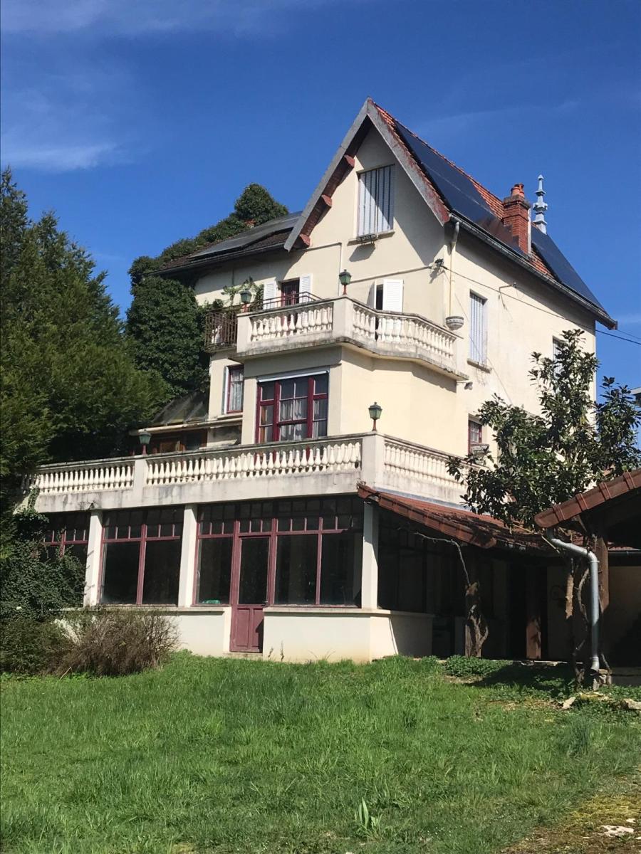 Belle et grande maison de charme datant de 1900 au cœur du village sur presque 40 ares de terrain avec un étang et un petit ruisseau. La maison est composée au rez-de-chaussée d'une grande pièce de vie, une cuisine accès à la terrasse à l'arrière orienté sud ouest, un bureau. En demi niveau un wc. Au premier étage se trouvent 3 chambres, deux salles de bain, un dressing. Au second niveau se trouvent encore deux chambres et une salle de bain. Grenier. Le sous-sol est composé de la chaufferie, buanderie, cave, un atelier, un grand jardin d'hiver. Dépendance type grange et abri voitures. 24 panneaux solaires très rentables sur le toit pour l'électricité. Chauffage au fuel et possibilité de mettre une pompe à chaleur dernière génération Dans la cour on trouve un appartement indépendant de 54 m2 composé d'une cuisine un salon deux chambres et une salle d'eau. Garage. Prévoir des travaux mais bien immobilier extrêmement rare! Cette demeure unique à RIOZ dégage un charme indéniable et propose des volumes aussi bien habitables qu'en dépendances très avantageux! Le cadre et l'environnement reste exceptionnel pour un bien immobilier situé à deux pas de toutes les commodités! Elle n'attend plus que vous pour lui donner une nouvelle vie en y mettant votre touche personnelle ! 399000 euros Honoraires à la charge du vendeur inclus dans le prix . Frais d'acte charge acquéreur: environ 31 500 € Réf. : 70010-1032039 Consultez nos tarifs : https://www.immobilier.notaires.fr/ Les informations sur les risques auxquels ce bien est exposé sont disponibles sur le site Géorisques : www. georisques. gouv. fr