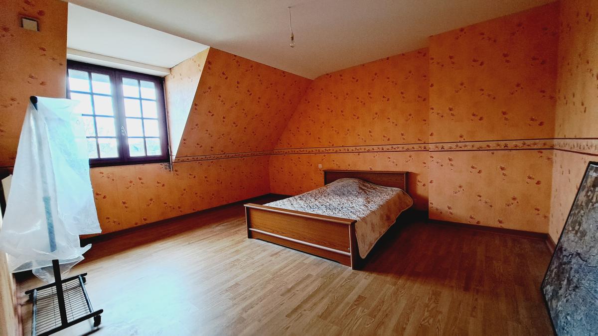L'étage est composé de trois chambres, une salle de bains, wc , deux greniers.