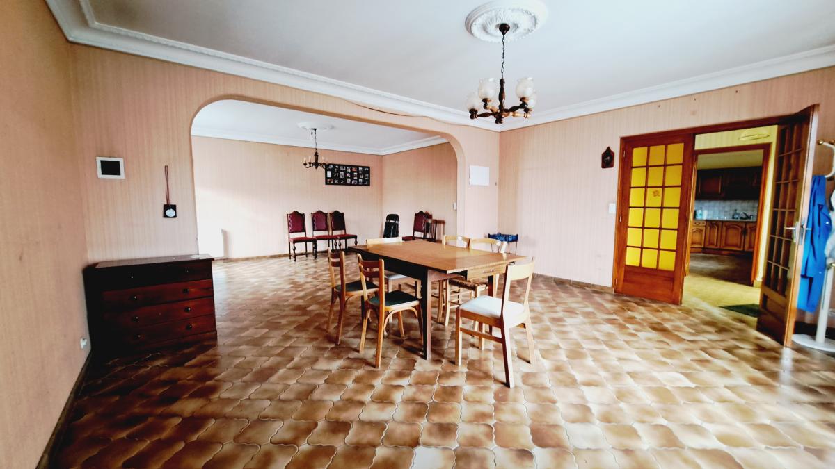 Ce bien est composé d'une entrée desservant une salle de séjour-salon d'environ 44 m² avec cheminée ( insert ) , une cuisine indépendante aménagée, trois chambres au rez de chaussée avec rangements , salle de douche, wc .