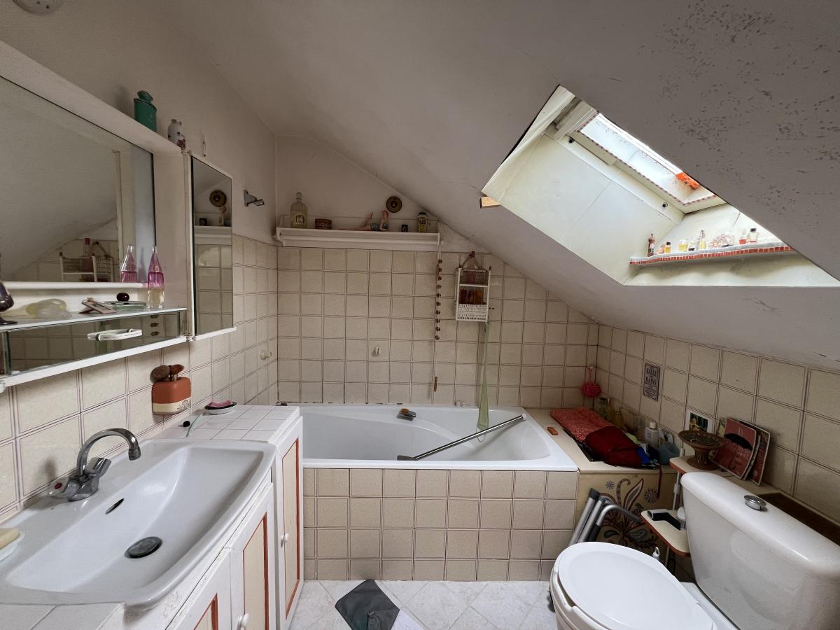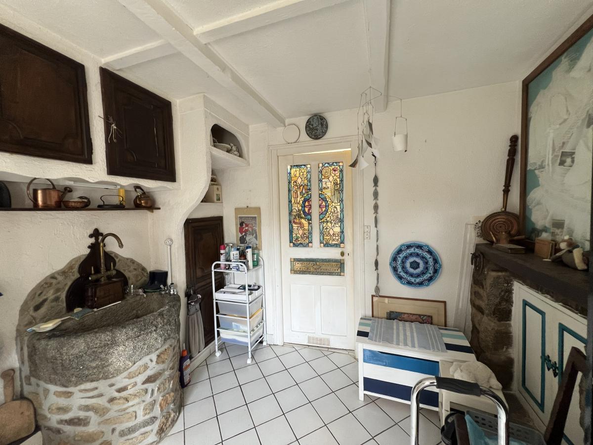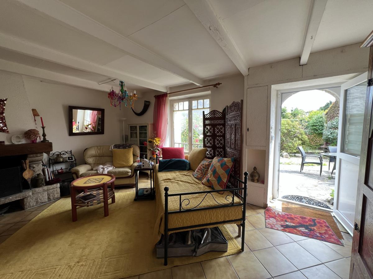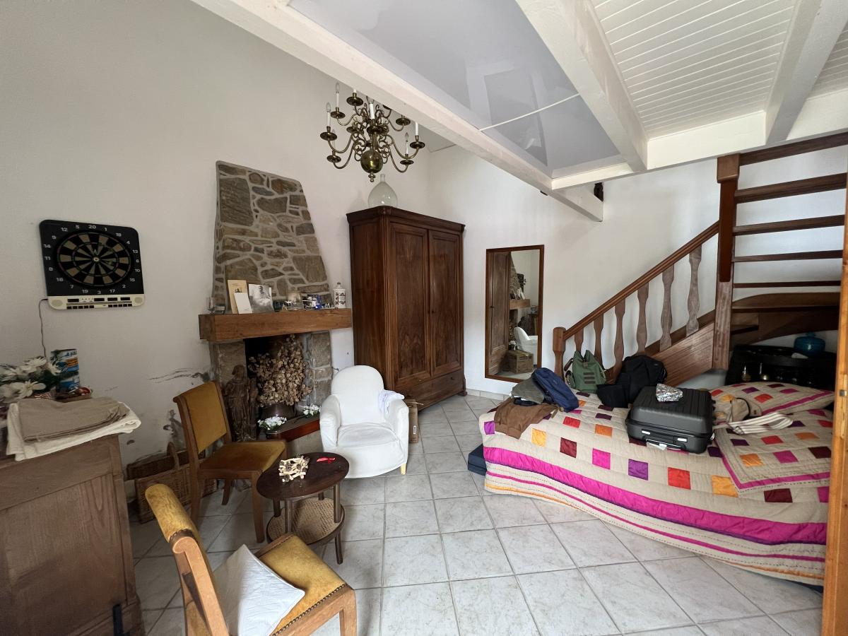 SAINT-QUAY-PORTRIEUX - Au calme, maison en pierres avec dépendances, sur terrain de 1351 m², comprenant : cuisine ouverte sur coin repas avec véranda, sas avec rangements et évier, salle d'eau wc, salon avec cheminée ouverte, une salle de jeux (possibilité chambre). A l'étage : 4 chambres, deux salle d'eau avec wc. En face : dépendance aménagée comprenant une pièce de vie, salle d'eau wc et chambre en mezzanine. Seconde dépendance comprenant une buanderie, garage avec atelier-bureau au-dessus. Environnement calme et agréable, cour exposée Sud, fort potentiel, prévoir travaux.