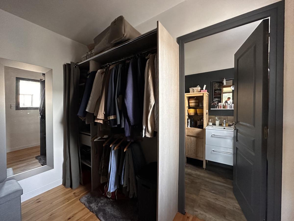 A VENDRE (56) ST AVE PROCHE VANNES CLINIQUE et GARE : JOLIE MAISON D'ARCHITECTE DE 2017, SUR TERRAIN CLOS DE 405 m² AVEC PISCINE CHAUFFEE: RDC : Entrée sur très belle pièce de vie (séjour-salon, coin bibliothèque) avec poêle à granulés, le tout donnant sur une terrasse en bois, couverte + store banne, jardin clos de murs , cuisine am-équipée donnant sur terrasse, wc/lave-mains, bureau, salon télévision, dressing, 1 belle chambre/salle d'eau privative et sortie terrasse - ETAGE : mezzanine à usage de salle de jeux avec grande baie donnant sur terrasse, 1 ch/parquet/dressing/salle d'eau/wc (accès terrasse), 1 ch/parquet/placard (accès terrasse), 1 ch/parquet/placard, wc, salle d'eau GARAGE AVEC COIN ATELIER ET CAVE A VIN ETANCHE EN SOUS-SOL