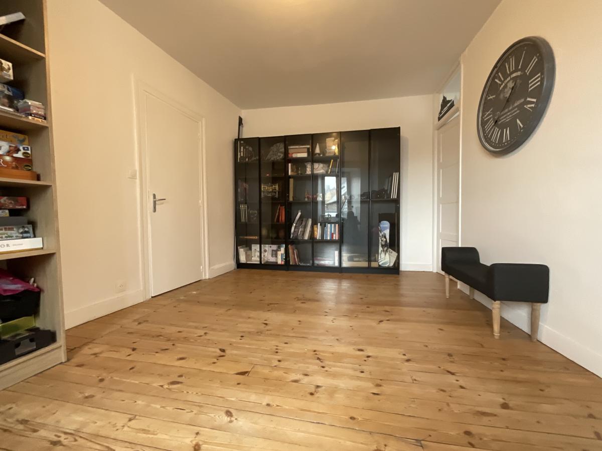 Rénovation très récente pour cette maison atypique. La vie se fera au premier étage avec jardin, pièce de vie généreuse avec cuisine aménagée équipée, bureau, salle d'eau, deux chambres une bibliothèque et véranda.