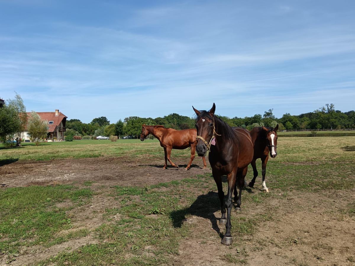 Pour accueillir les chevaux, 9 paddocks dont 7 avec abris tous clôturés de lisses bois. Chaque paddock dispose de clôtures électriques et points d'eau à disposition.