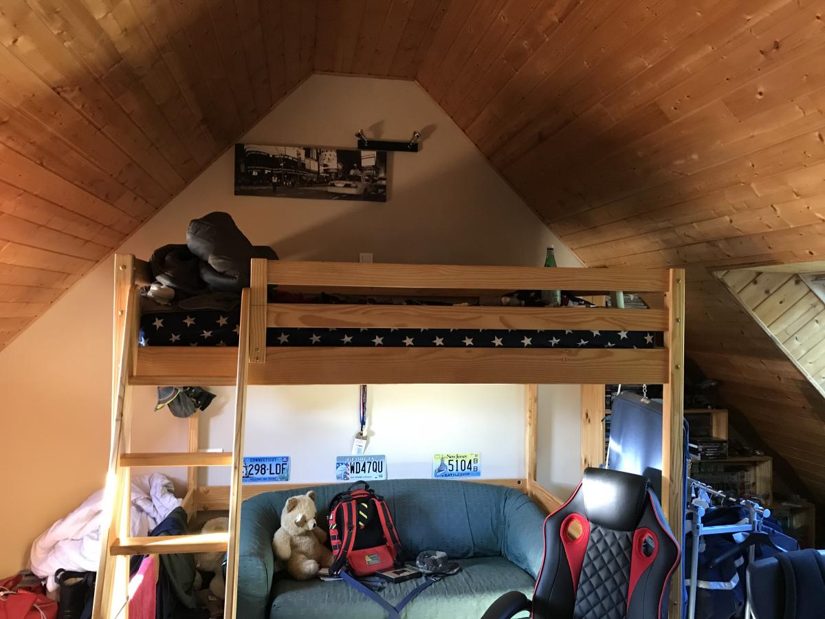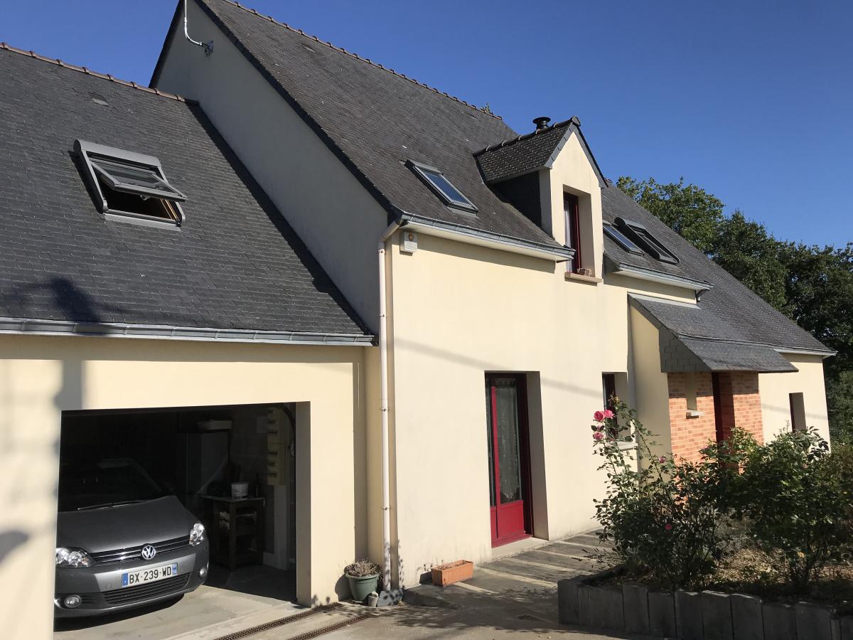 - Au rez-de-chaussée : entrée avec placard, cuisine aménagée et équipée, cellier, séjour-salon avec poêle à bois, une chambre, WC, salle de bains, garage.