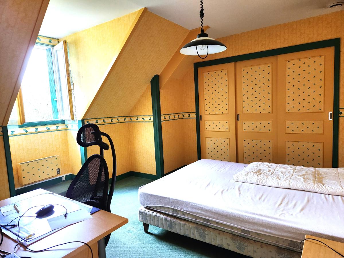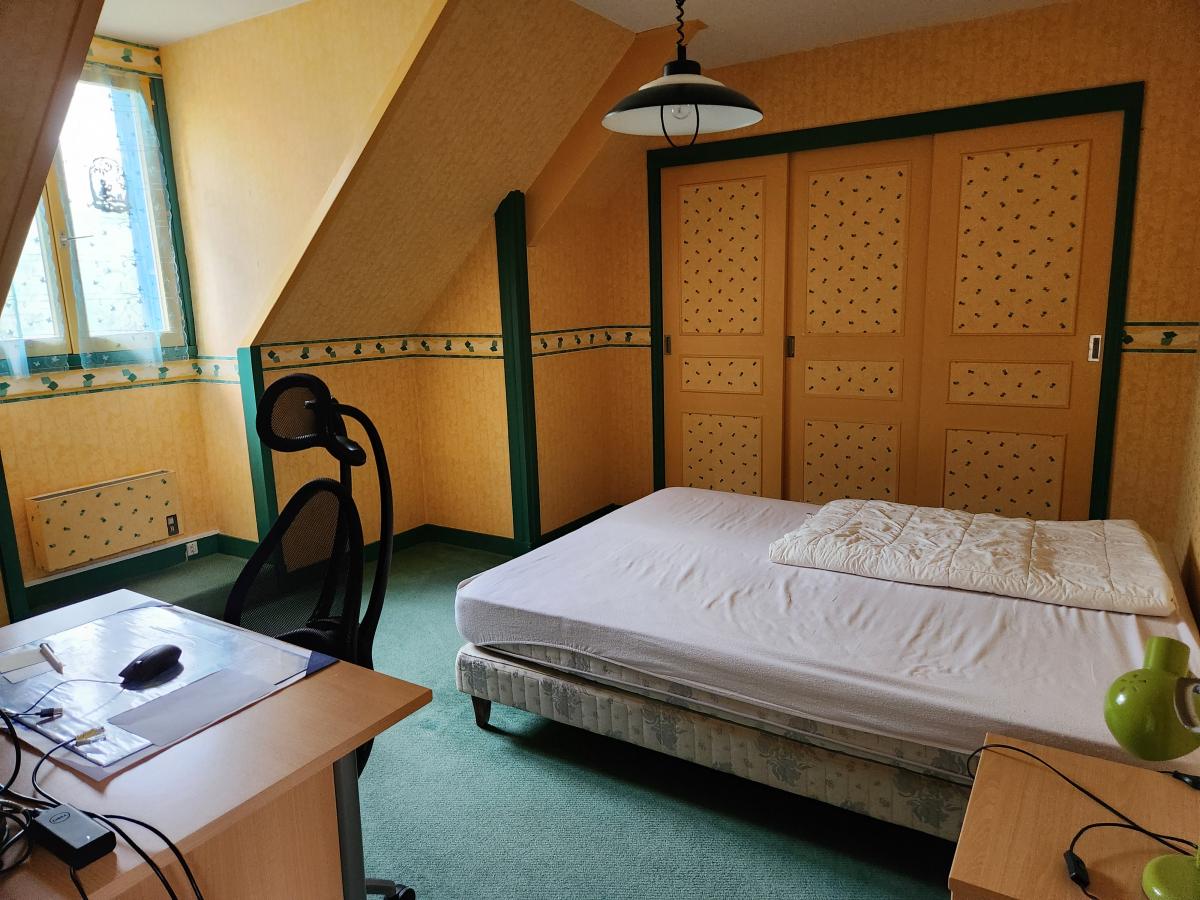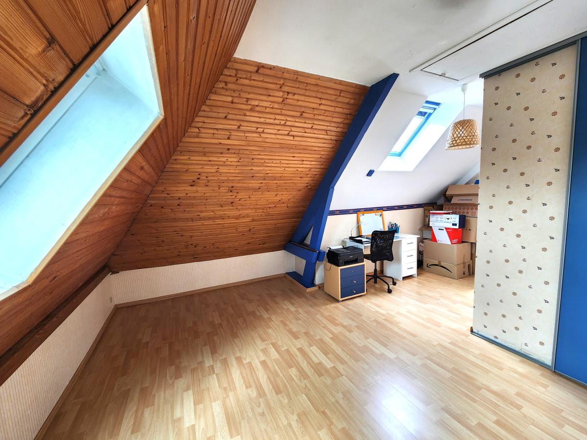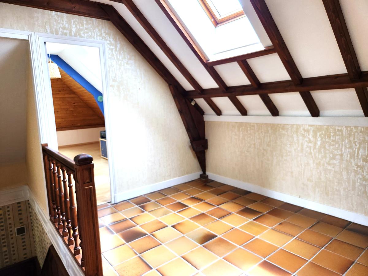 A l’étage, un palier, deux chambres de 14 et 15 M², une pièce bureau de 6 M², une salle d’eau et un WC indépendant.