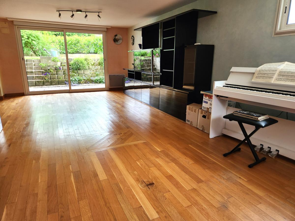 Au sous-sol semi enterré, une chambre de 9,3 M², une salle d’eau avec WC, une grande pièce de vie de vie de 50 M² pouvant être redécoupée , une buanderie et une cave.