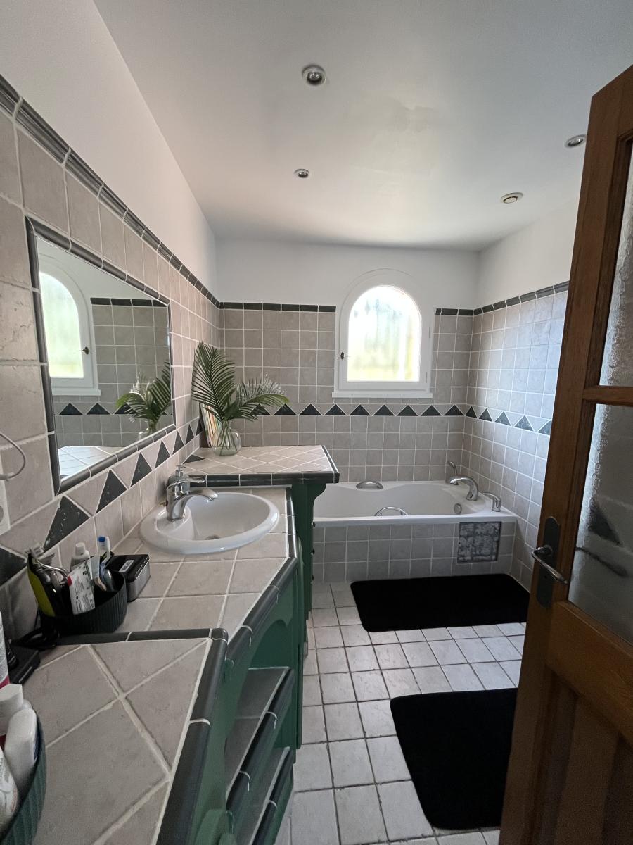 - au 1 er étage : un pallier dessert 1 salle de bains complète, WC ind., 2 chambres avec placards et une suite parentale avec sa terrasse.