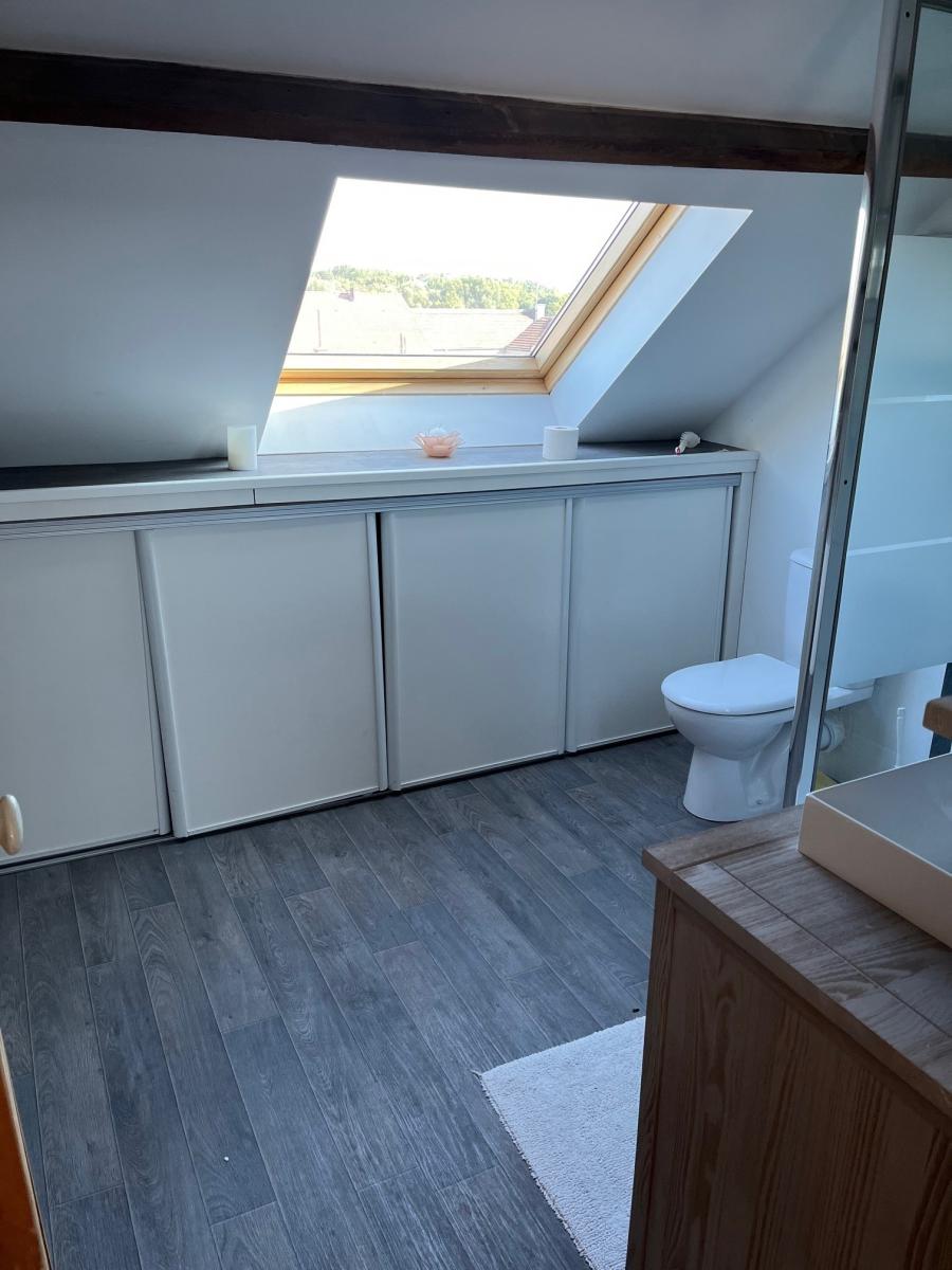 Au second étage : 1 chambre, salle de bain avec baignoire, douche et WC.
