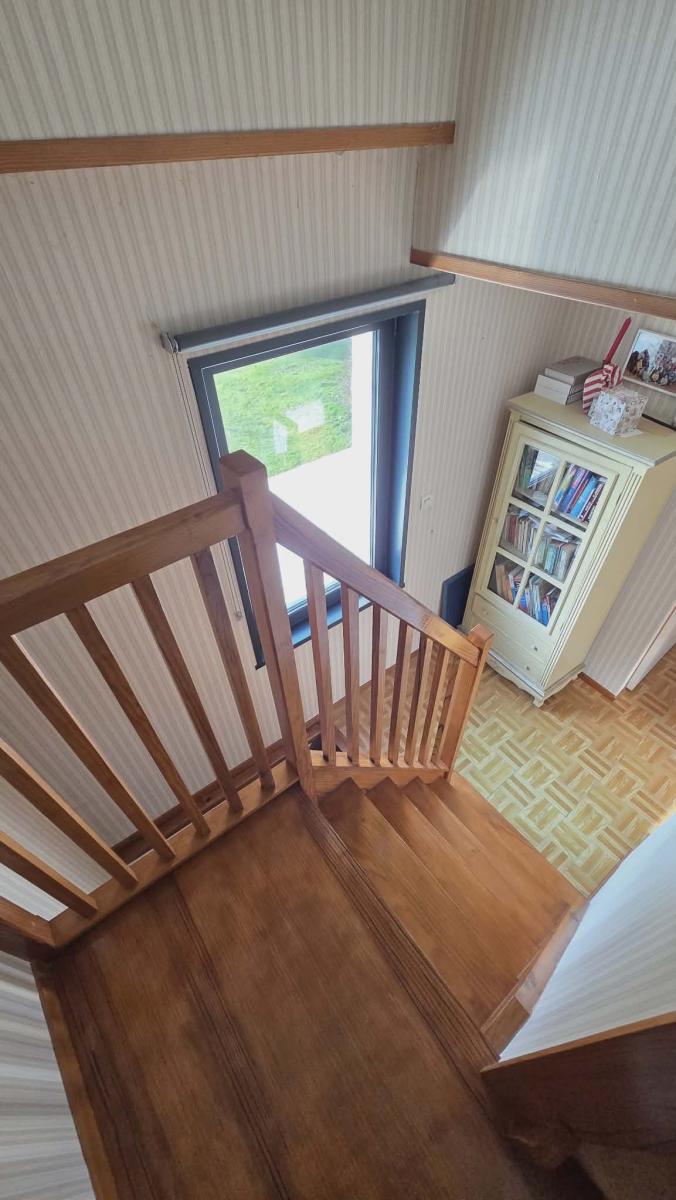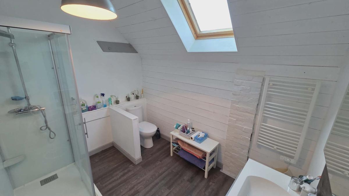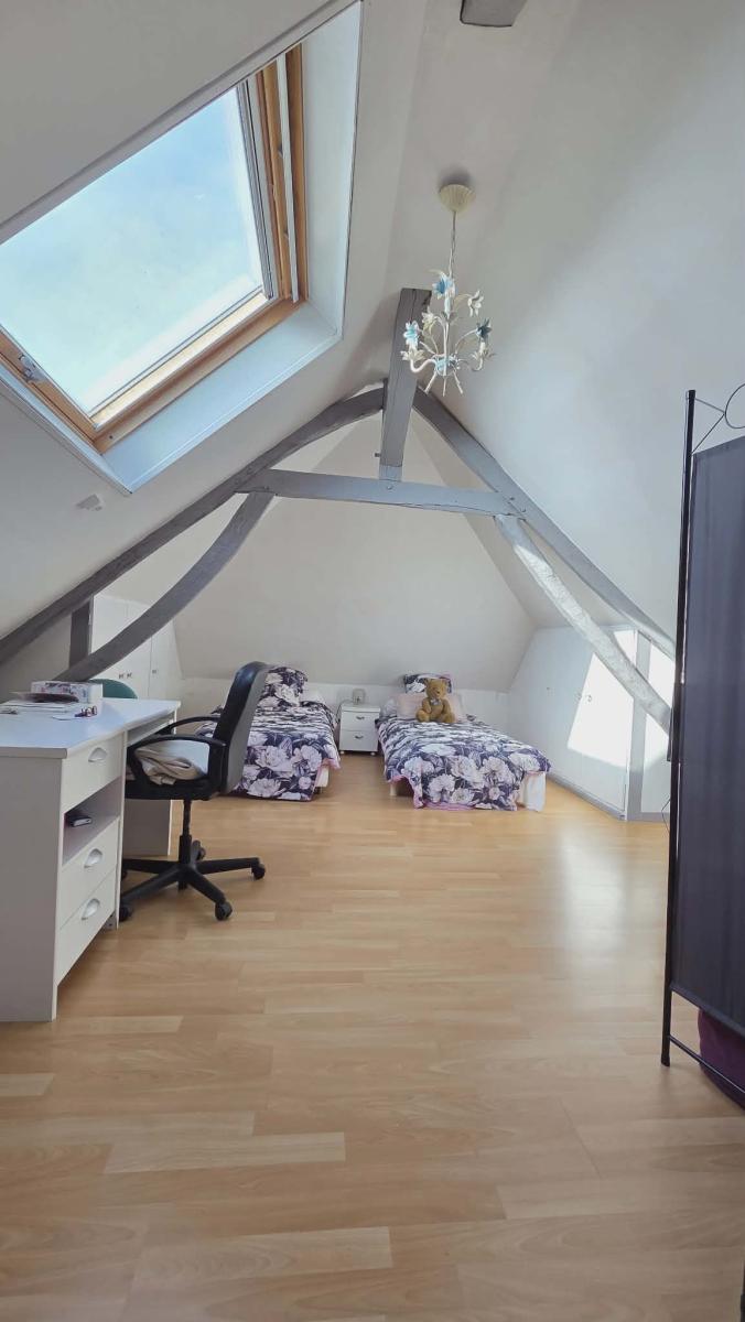A l'étage palier donnant sur trois chambres dont une grande, wc, salle d'eau .