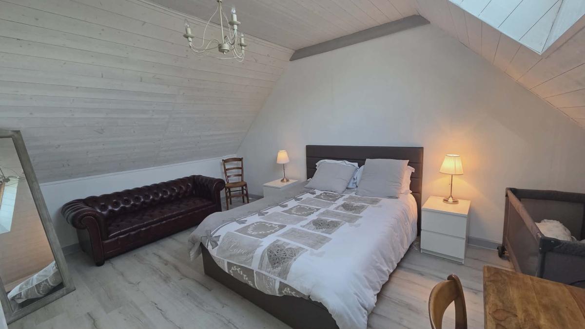 Dépendance aménagée offrant hall d'entrée avec dressing, grande pièce ouverte avec espace cuisine et salon, salle d'eau avec wc, chambre.