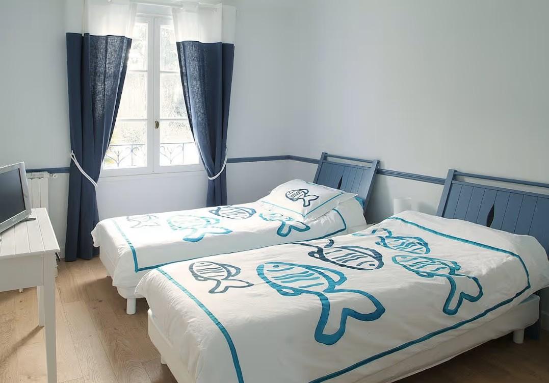 -à l'étage : suite parentale avec chambre, salle de bain et wc, une seconde suite parentale avec deux chambres séparées, une salle d'eau et un wc.